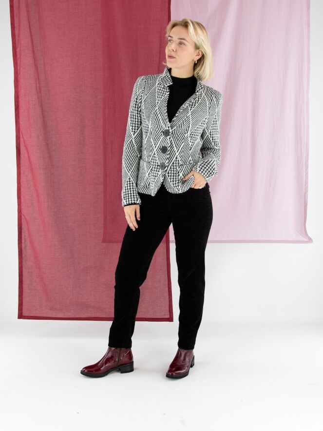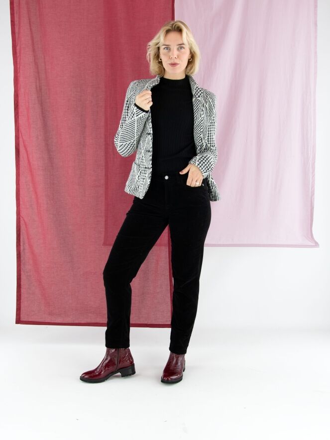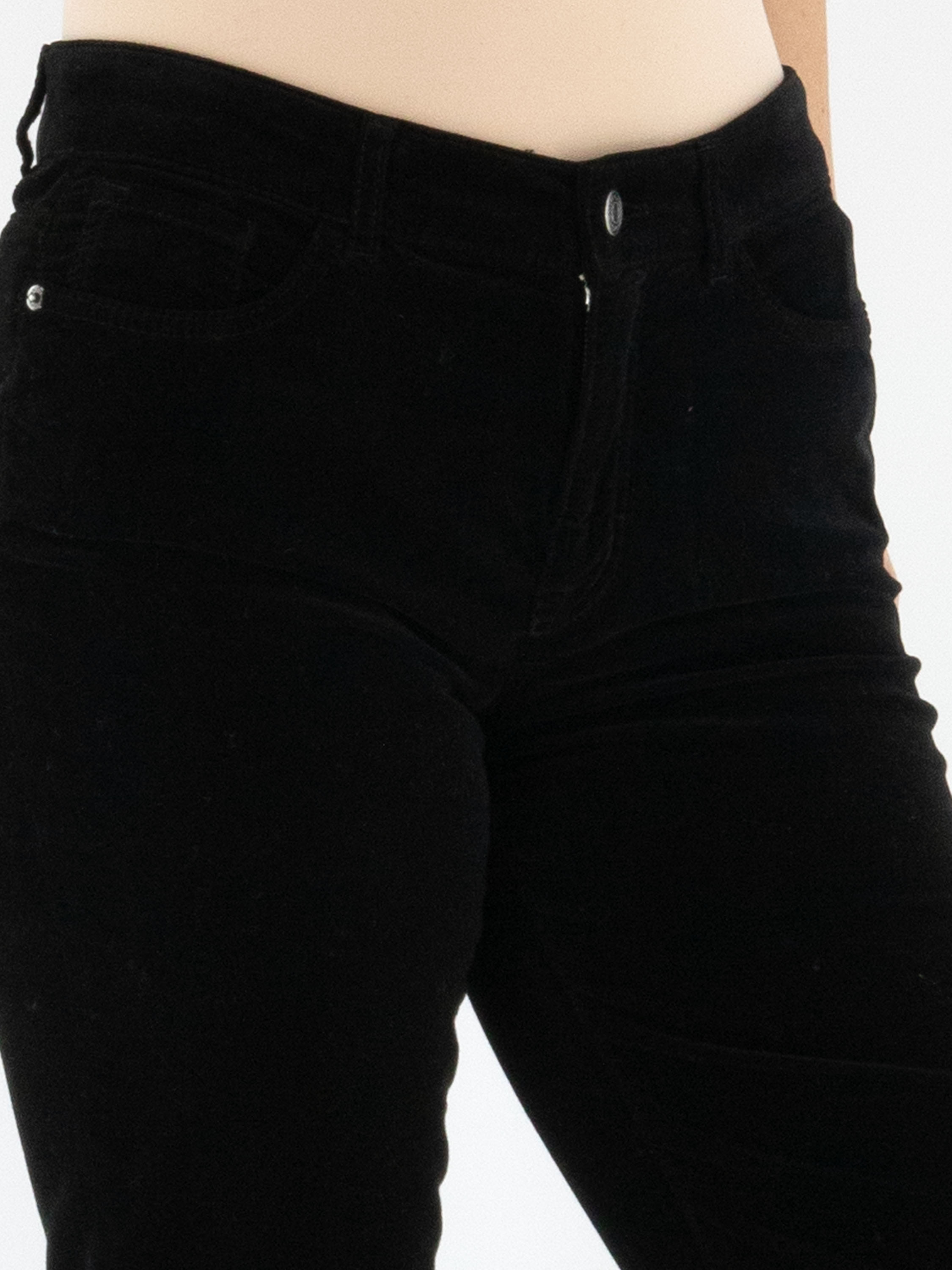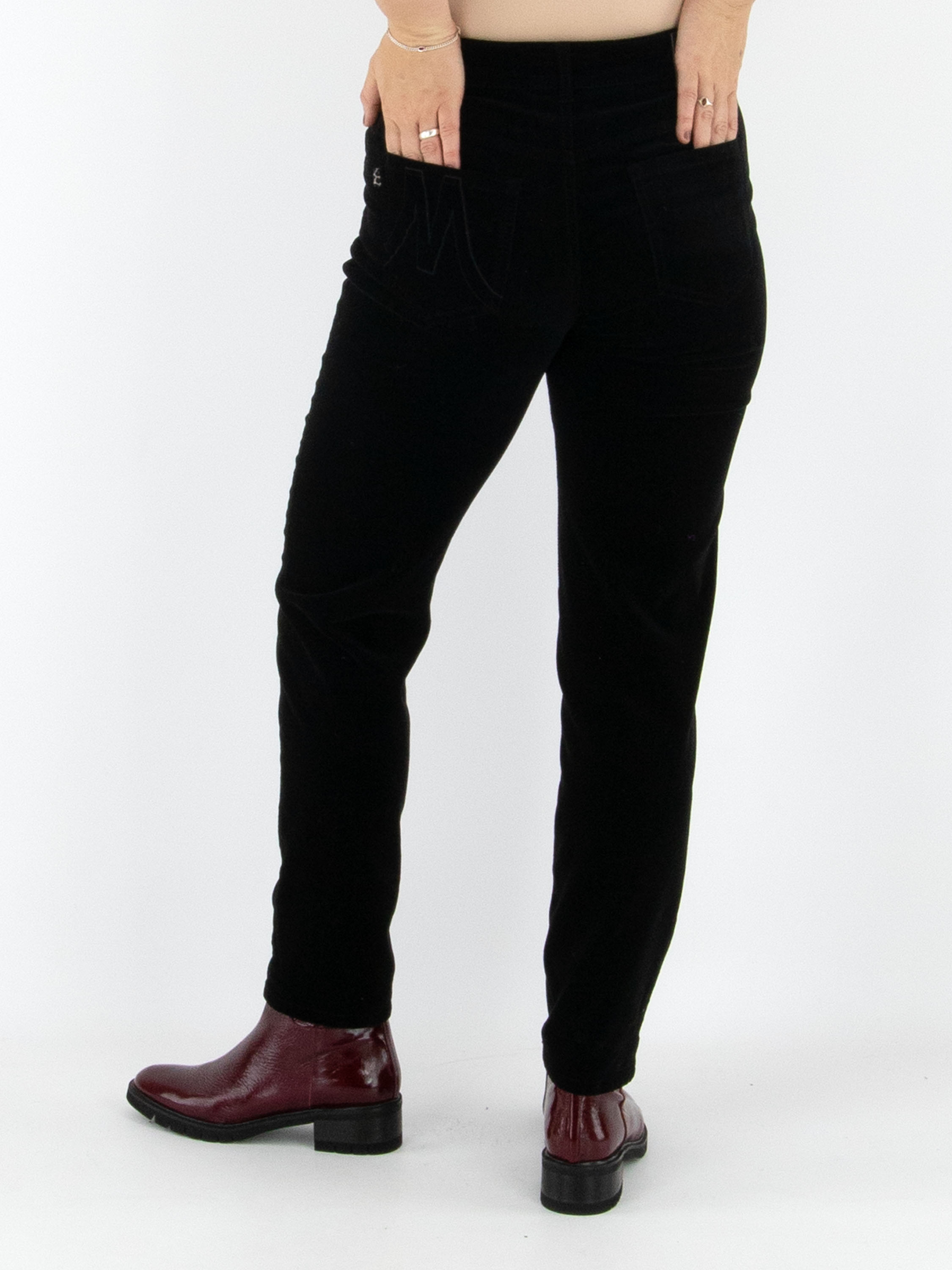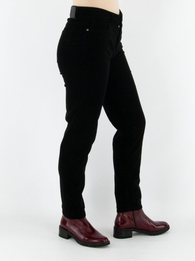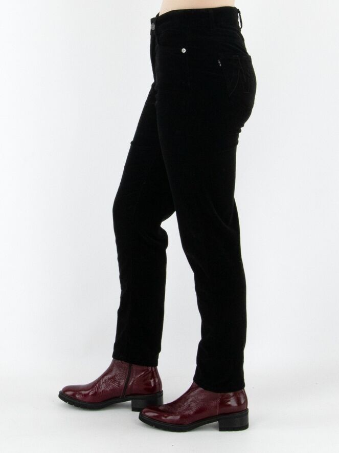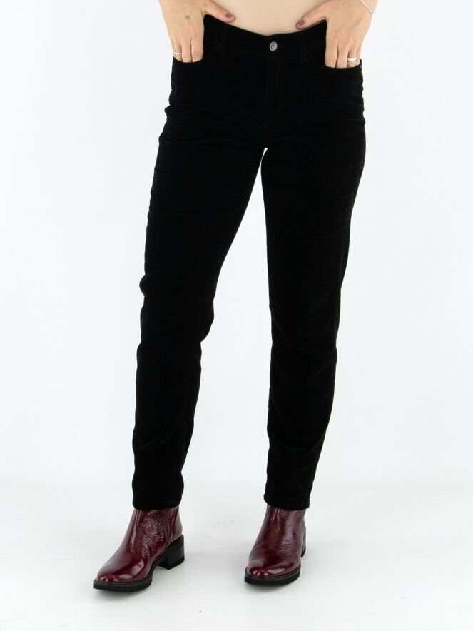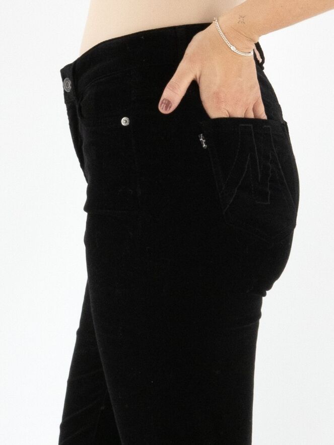 Un pantalon en velours de Marc Cain en noir. Ce modèle adopte une coupe classique à 5 poches et peut être lavé à 30 degrés.