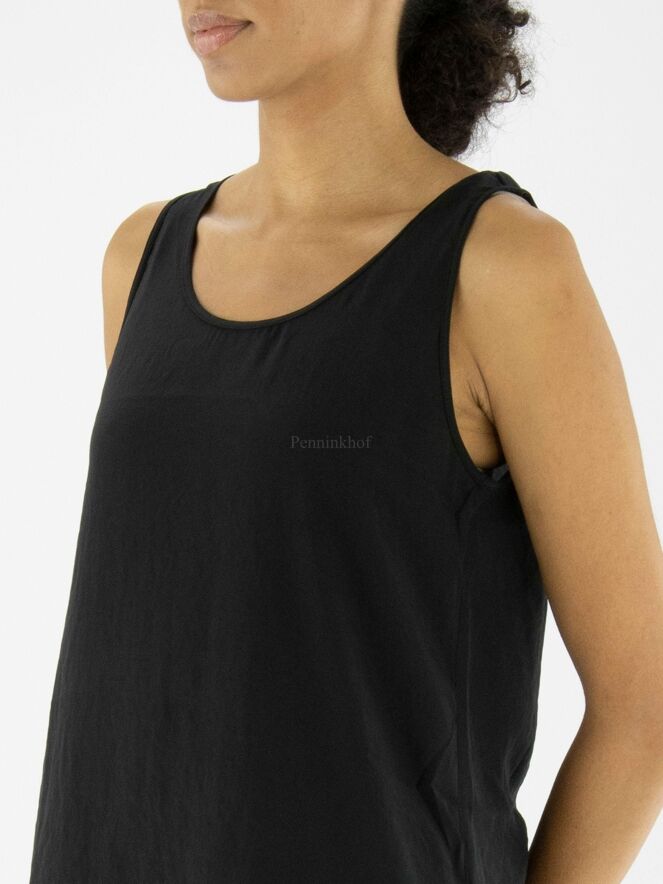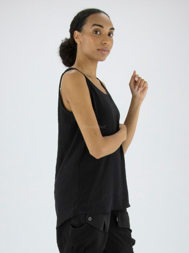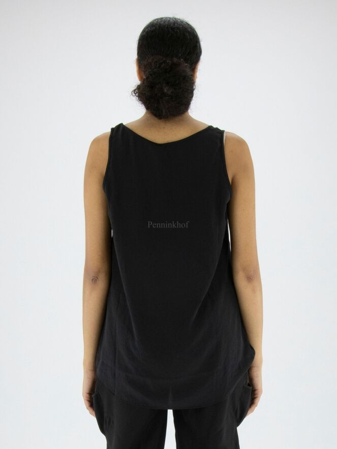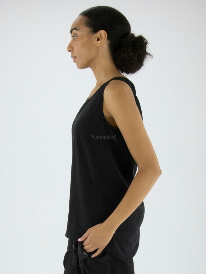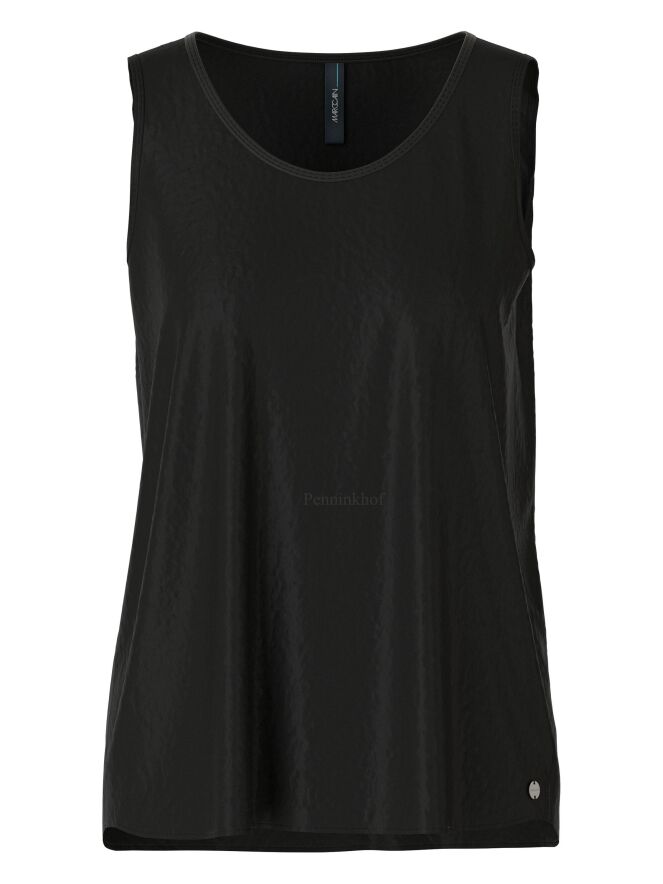 Top Marc Cain en tissu lisse et mat de couleur noire. Le top a une encolure ronde et peut être lavé à 30 degrés.