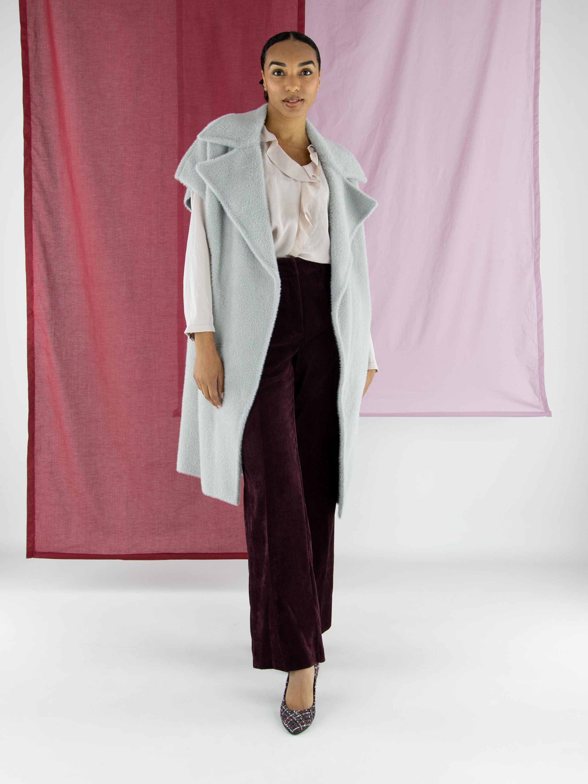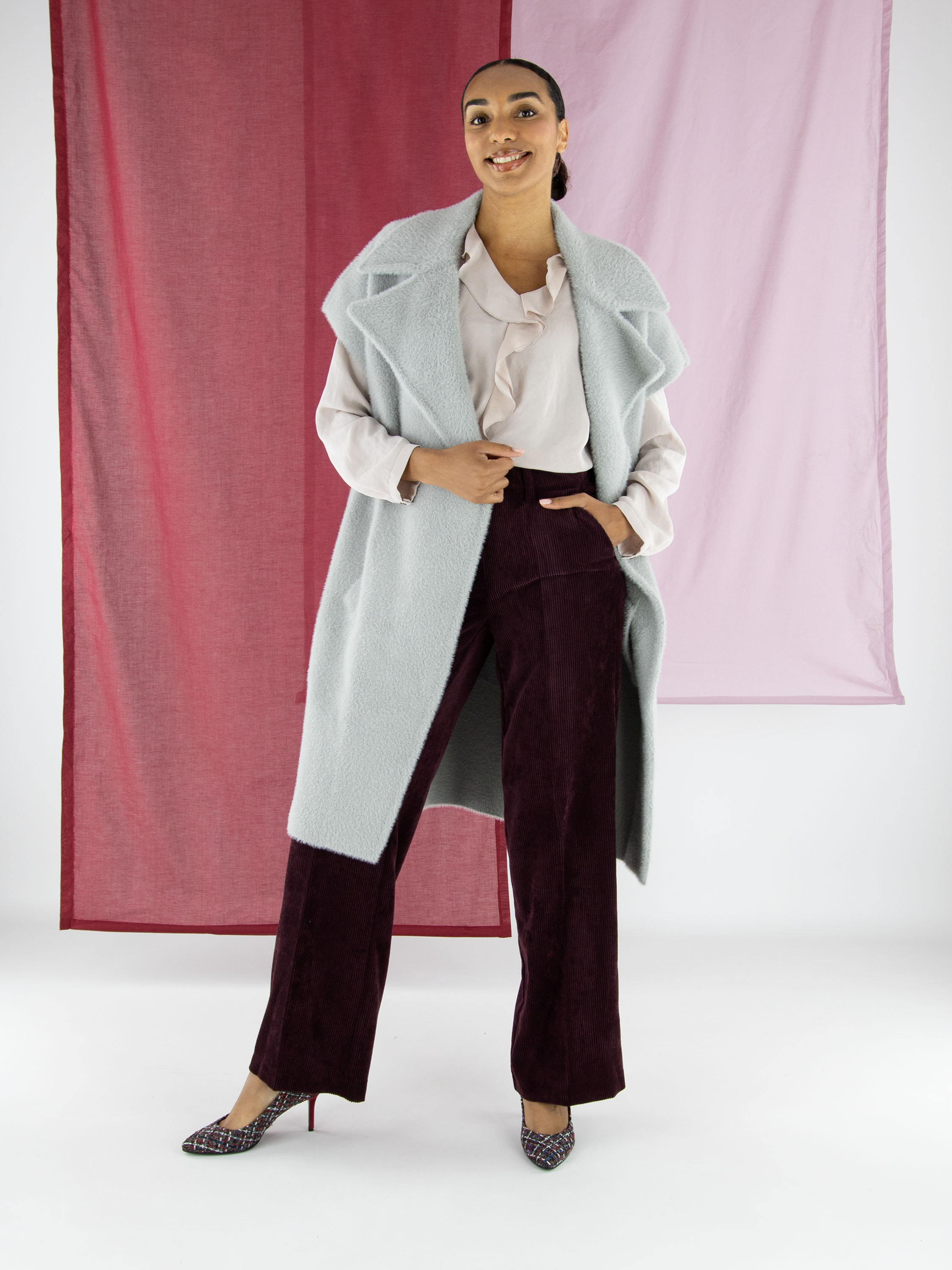 Un chemisier de Marc Cain en beige. Le chemisier présente un large col ondulé qui se prolonge depuis la base du col en V jusqu’à la taille sous forme de volant. Les manches longues se terminent par un poignet avec un revers et une fermeture à bouton. Ce chemisier peut être lavé à 30 degrés.