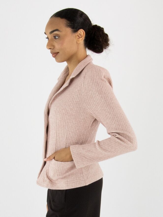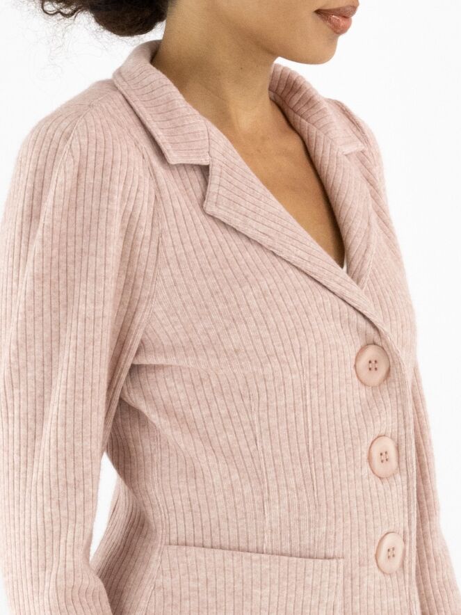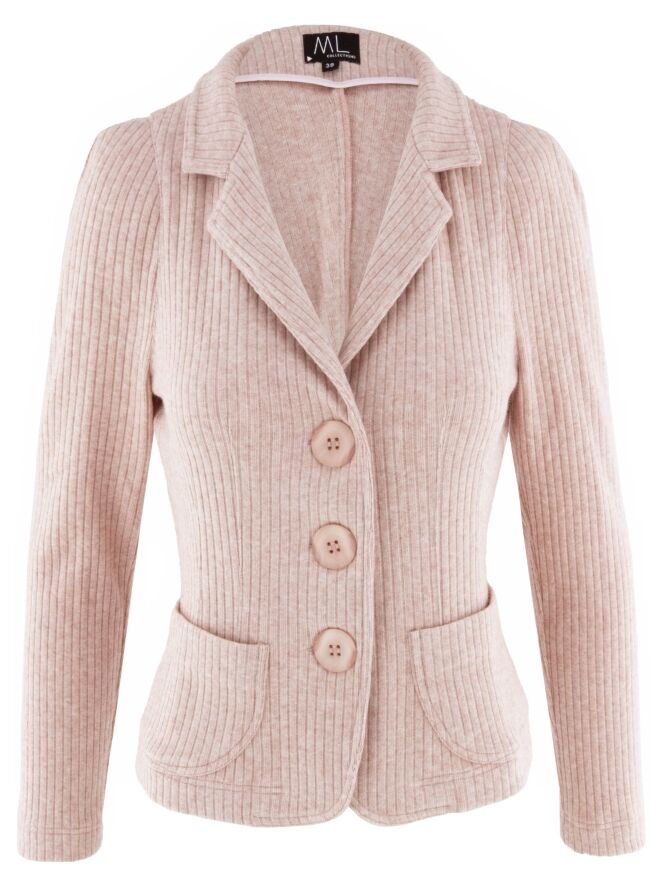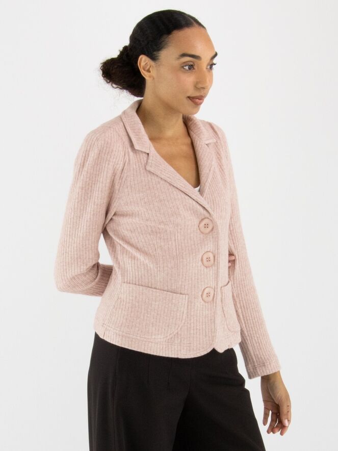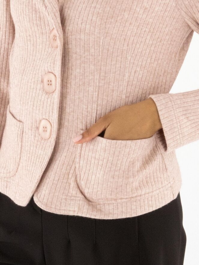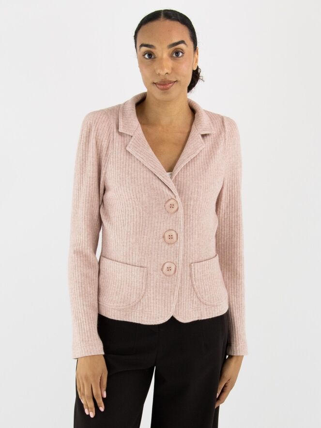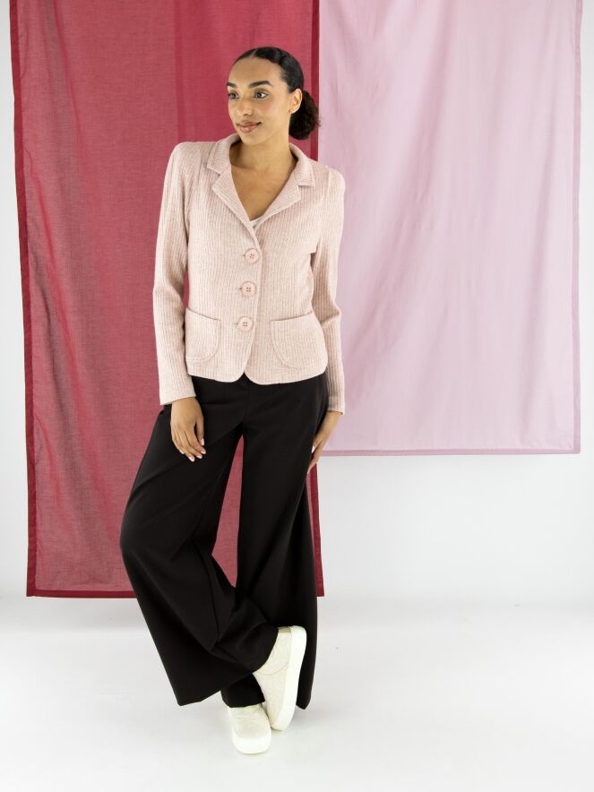 Blazer de la marque ML Collections en rose. Le tissu présente une structure finement côtelée. Ce blazer possède une fermeture à trois boutons et n’est pas doublé. Ce blazer ne doit pas être lavé.
