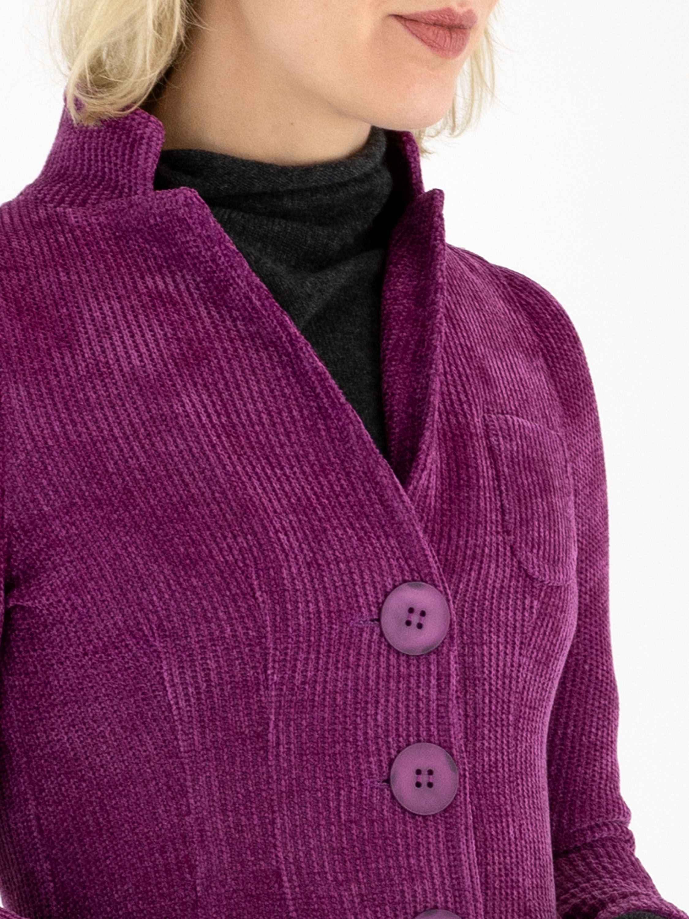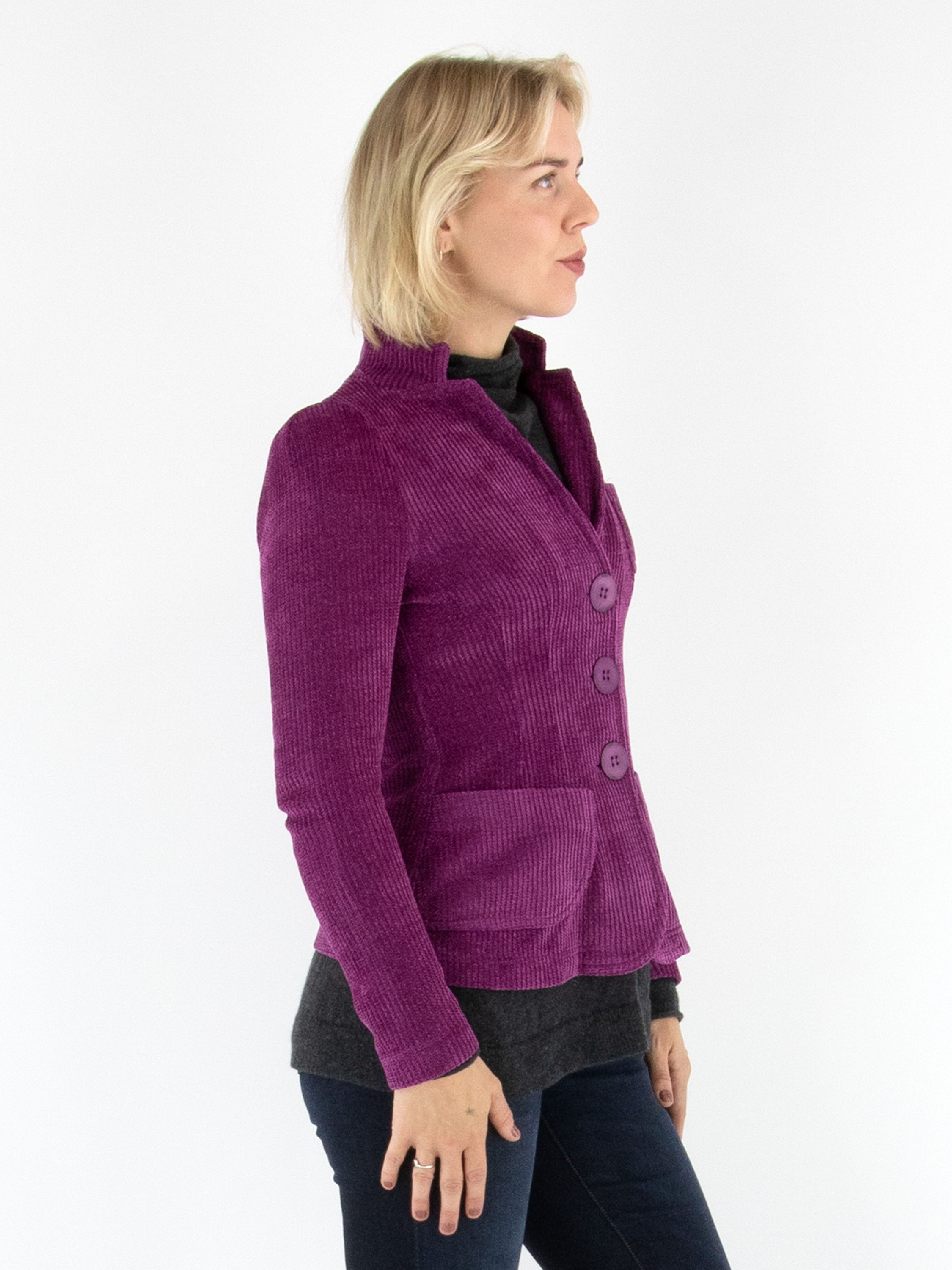 Blazer de ML Collections dans une teinte violette élégante. Ce blazer de créateur, confectionné en luxueux velours côtelé et non doublé, offre une allure fluide et raffinée. Sa fermeture à trois boutons souligne une silhouette féminine et intemporelle. Pour préserver sa qualité, nous conseillons un nettoyage professionnel plutôt qu’un lavage.
