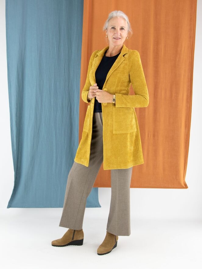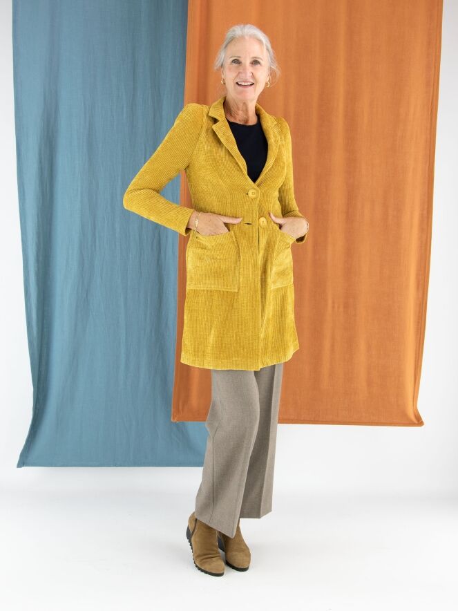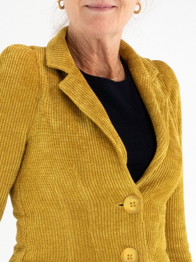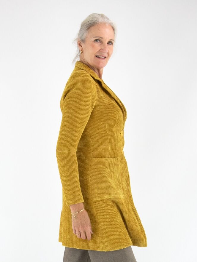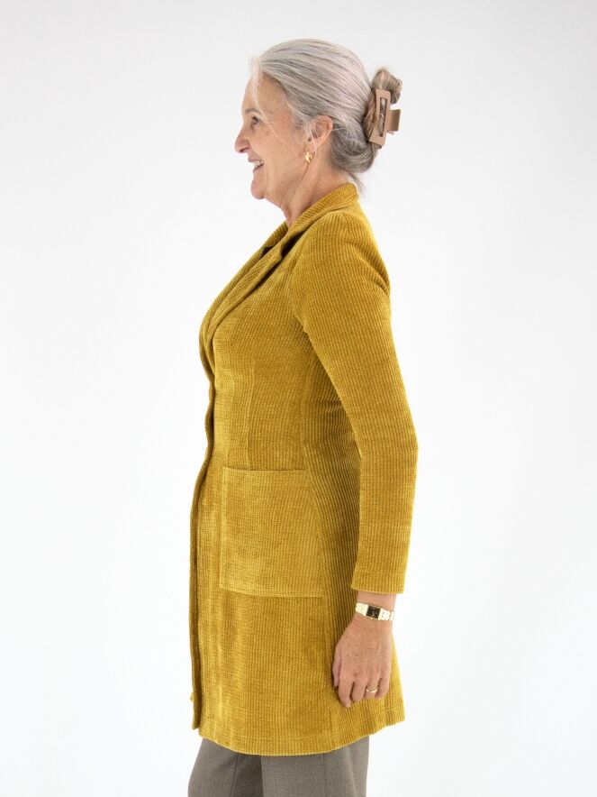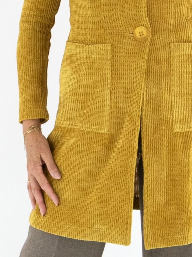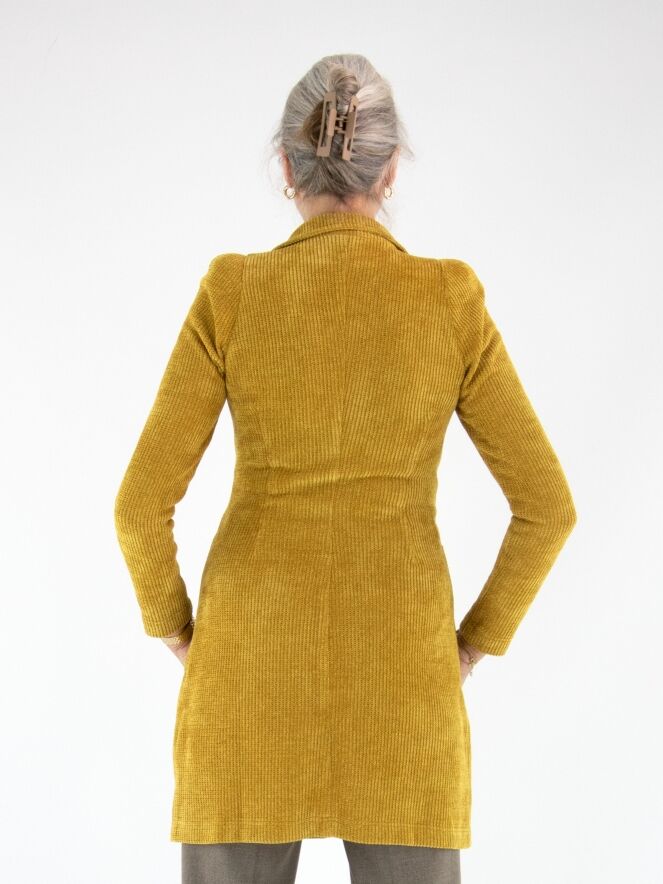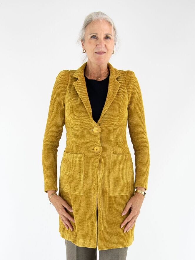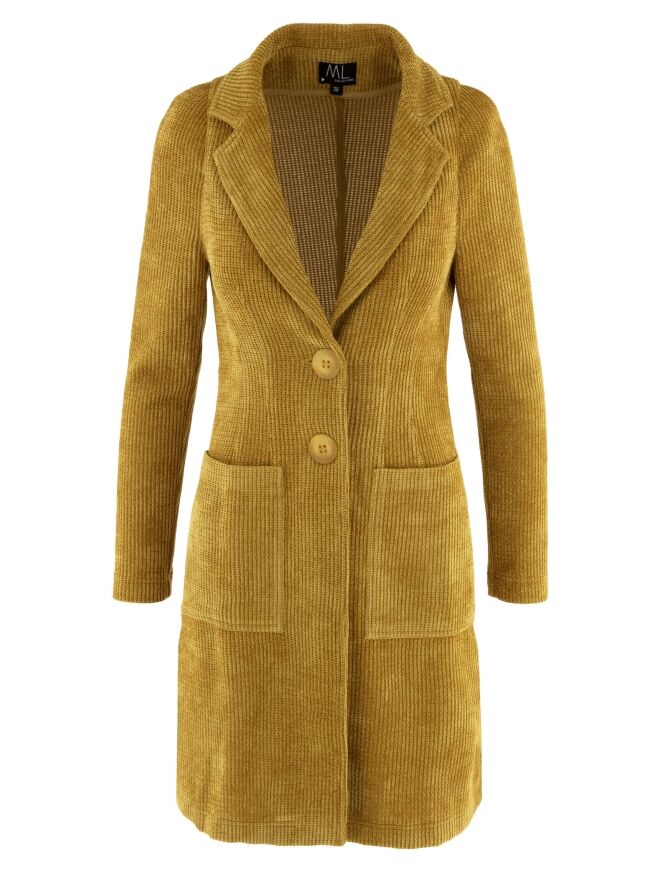 Un élégant long blazer de ML Collections dans une teinte ocre jaune raffinée Ce blazer est confectionné dans une qualité côtelée sophistiquée et est volontairement non doublé ce qui lui confère légèreté et fluidité La fermeture à deux boutons apporte une touche délégance intemporelle Veuillez noter que ce blazer ne doit pas être lavé