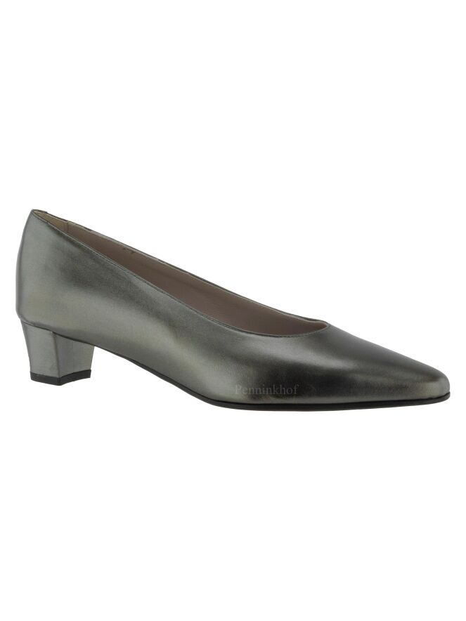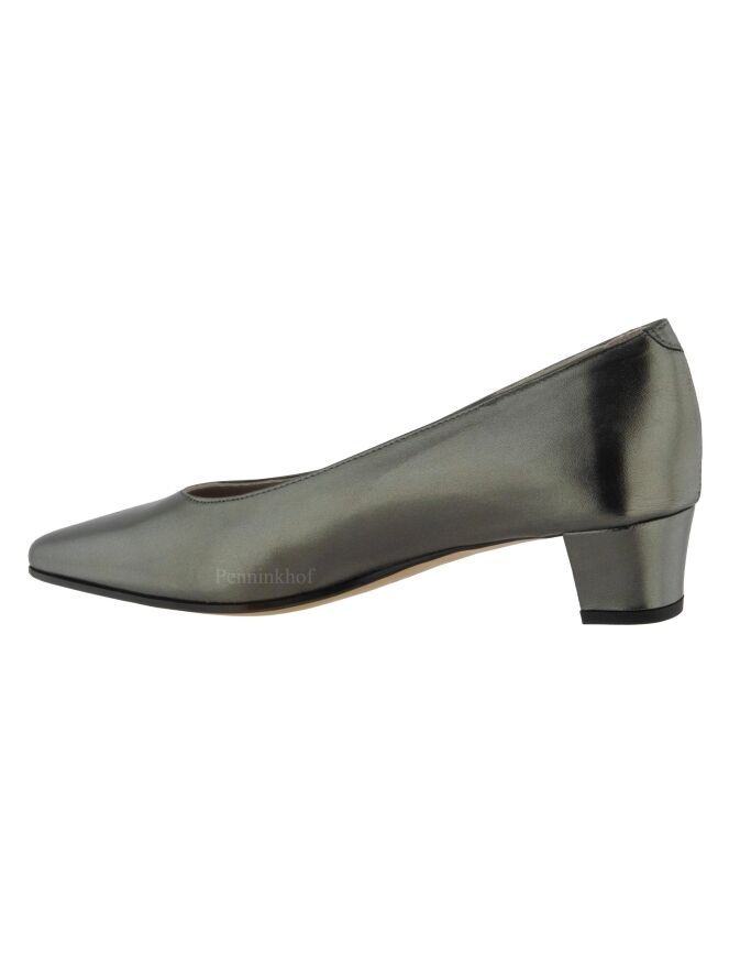 Escarpin de la marque Panara, en cuir de couleur bronze. L'escarpin a un nez pointu. L'intérieur est doublé de cuir.