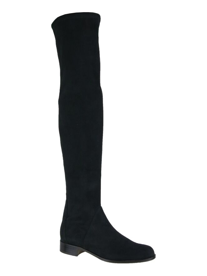 Cuissarde luxueuse de la marque Panara, en daim stretch de couleur noire. L'intérieur de la cuissarde est doublé d'un tissu stretch satiné mat.