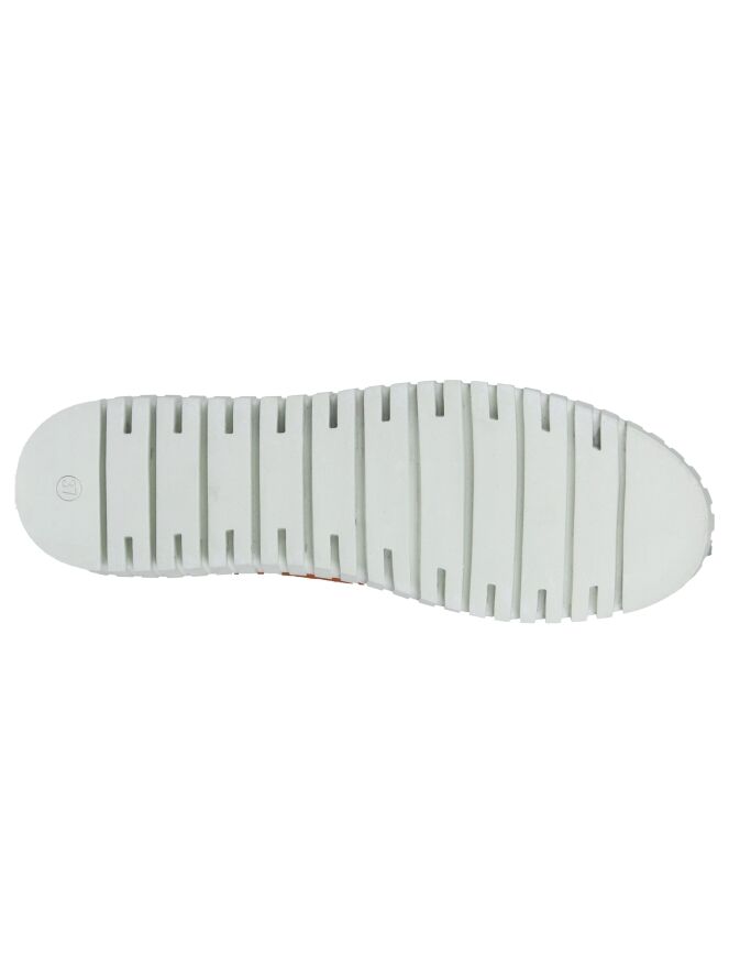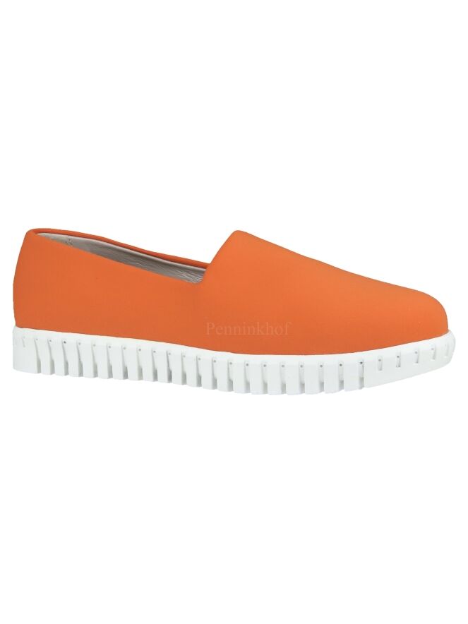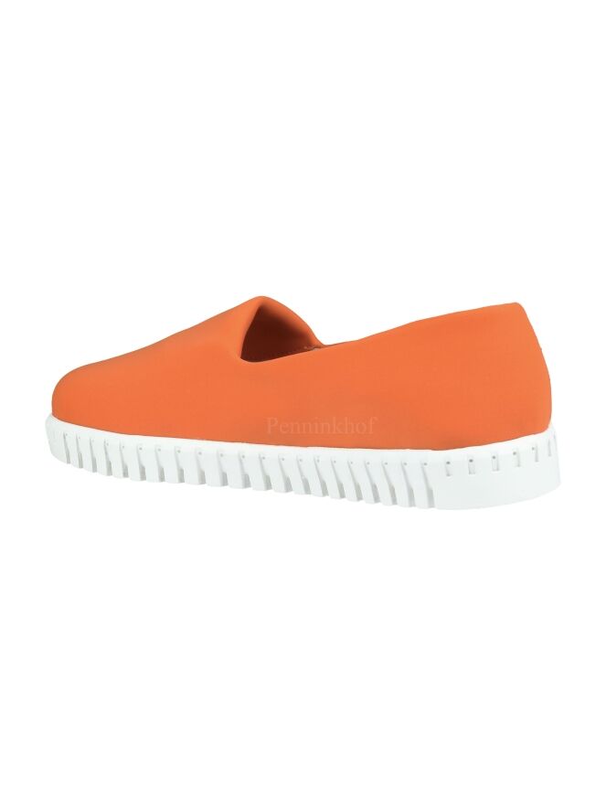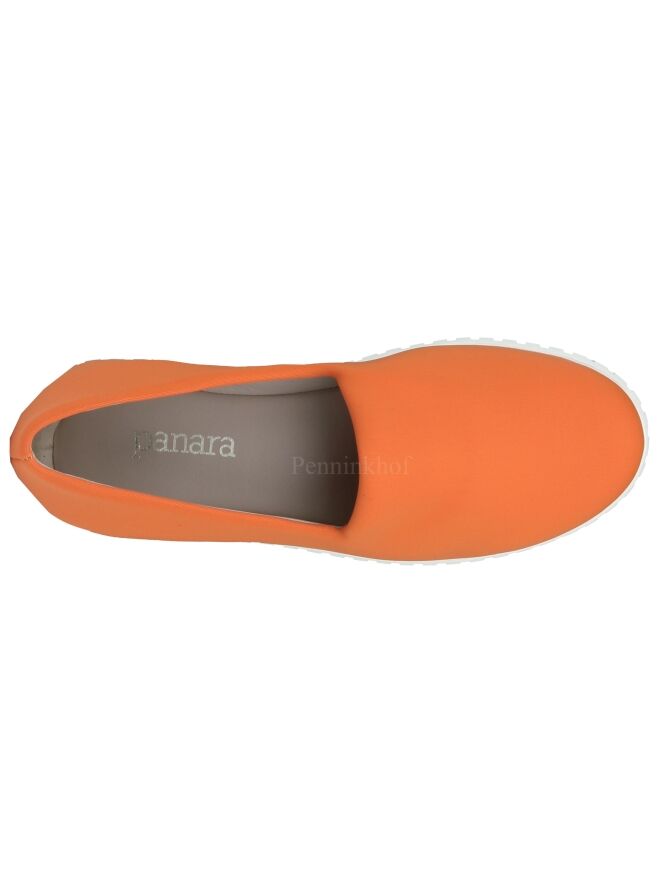Sneaker basique de la marque Panara, de couleur orange. Le tissu élastique s'adapte parfaitement au pied et offre un grand confort. La semelle sportive est blanche et crantée.