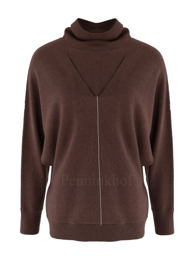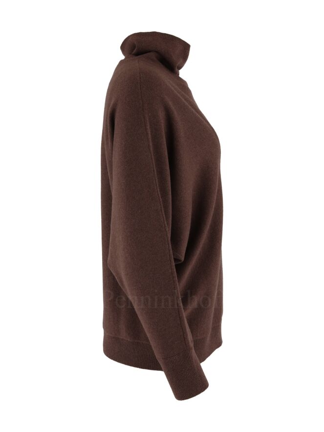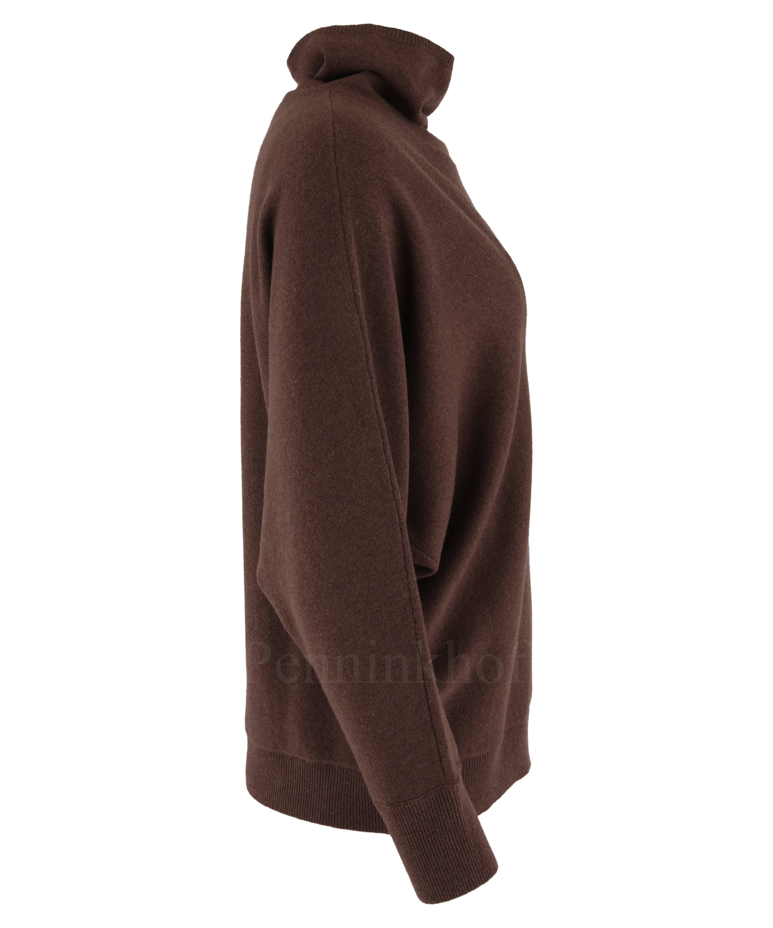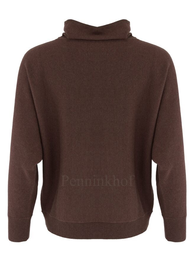 Pull-over à la coupe décontractée de la marque Peserico, de couleur marron. Le pull présente un col montant lâche. Les manches longues et le bas de la tunique sont à bords côtelés. Lavage à la main.