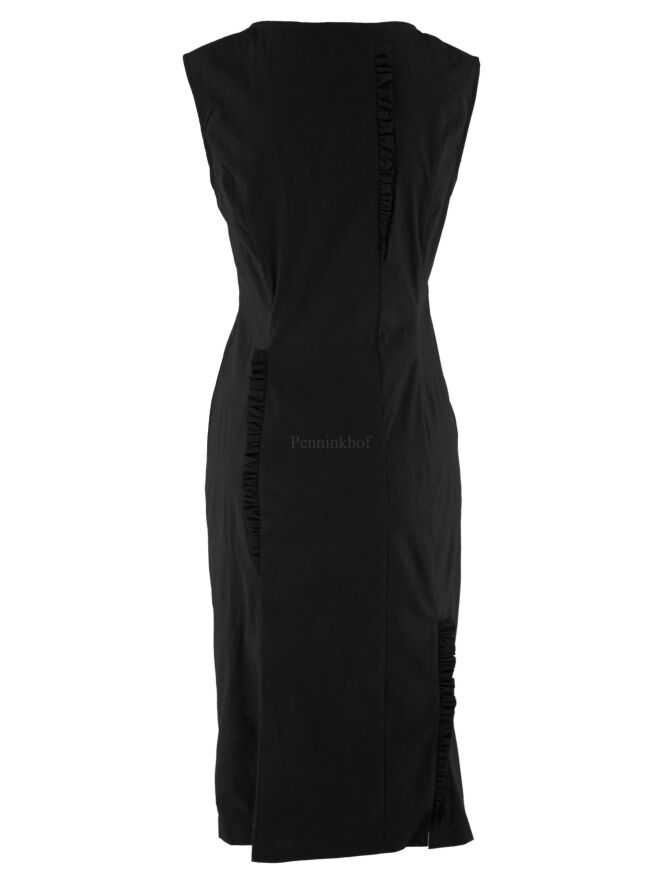 Robe de la marque noire Rundholz, de couleur noire. Des passepoils smockés sont présents à plusieurs endroits le long des coutures sur le devant et dans le dos. Cette robe peut être lavée à 30 degrés.