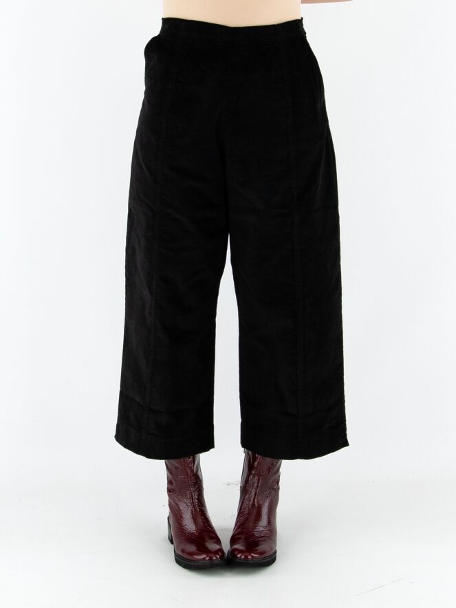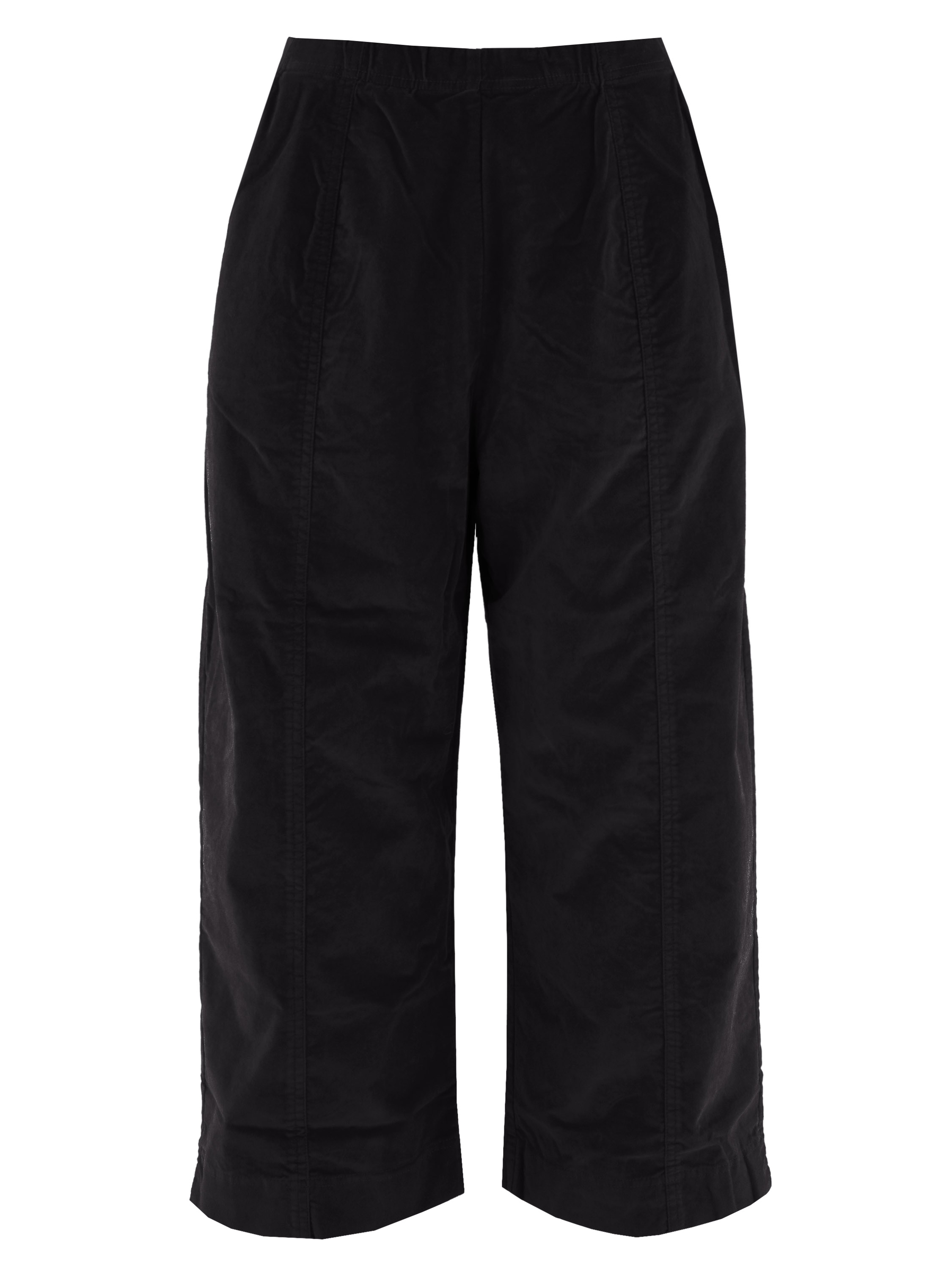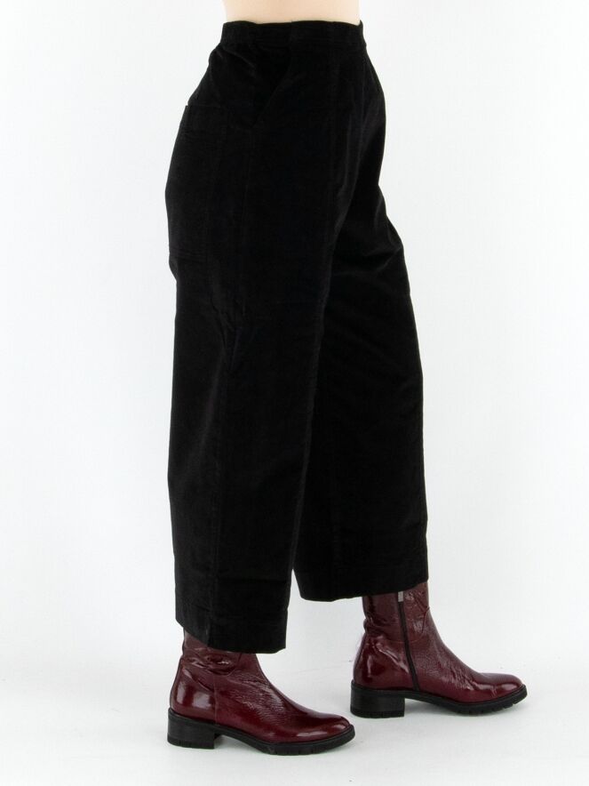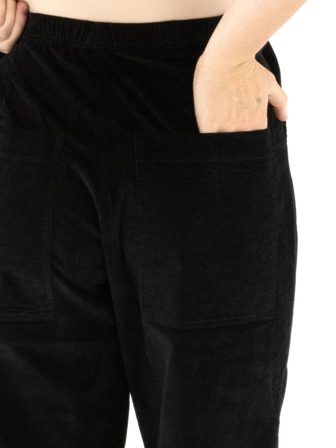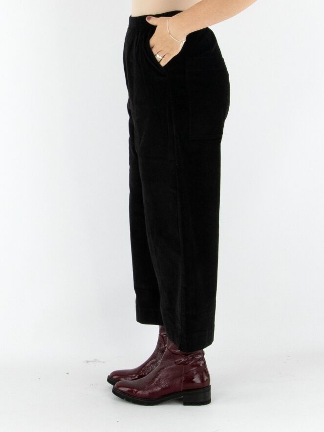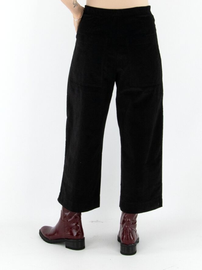 Un pantalon en velours à coupe droite de Rundholz Black Label en noir. La ceinture est élastiquée. Le pantalon est doté de poches latérales et peut être lavé à 30 degrés.