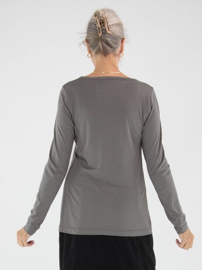 Un shirt de Rundholz Black Label en gris. Le modèle présente une encolure ronde et des manches longues. Ce shirt peut être lavé à 30 degrés.