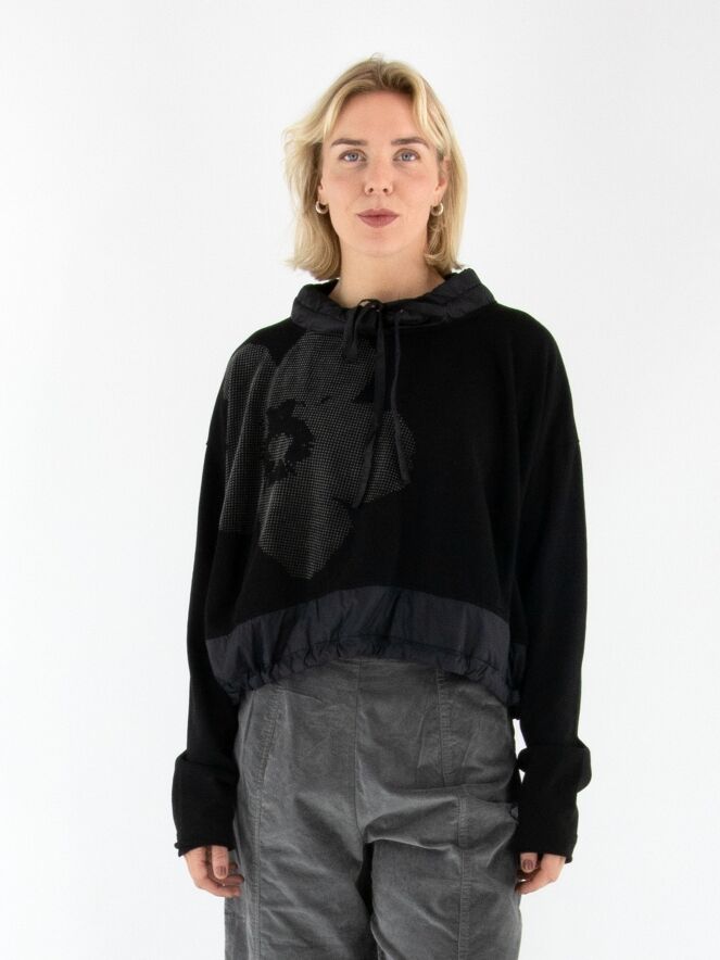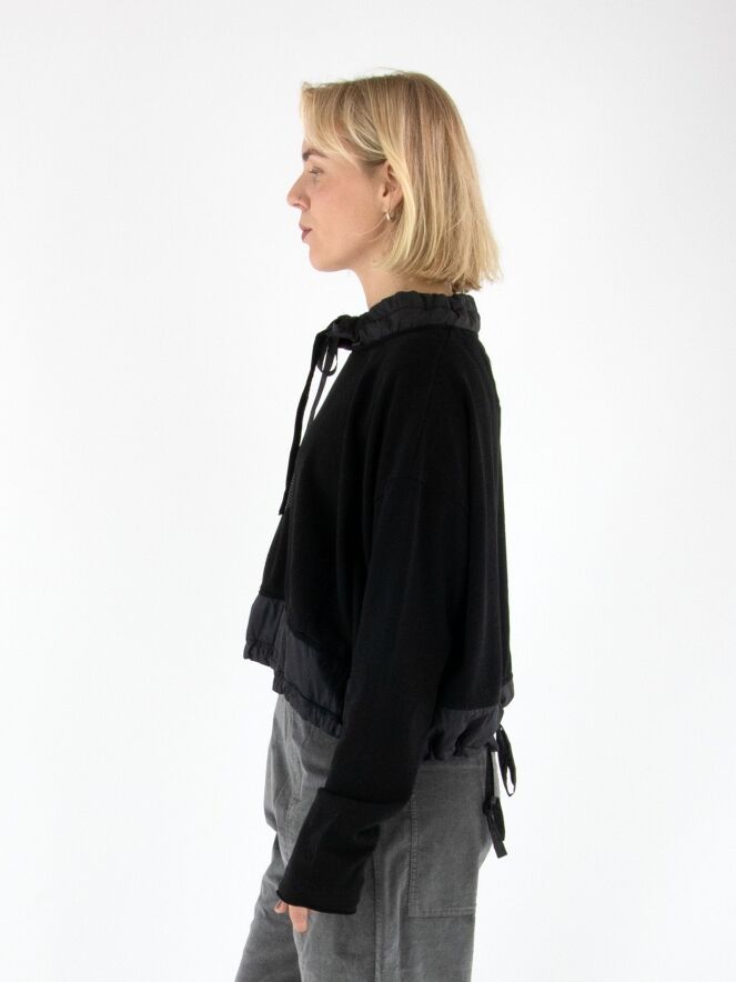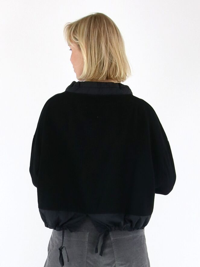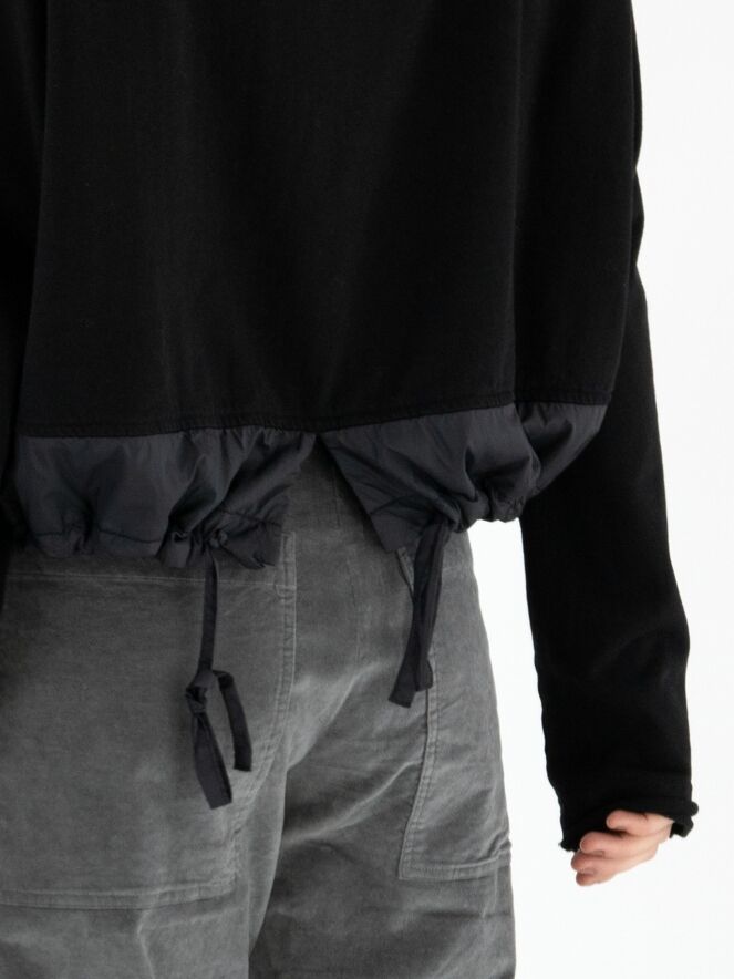 T-shirt Rundholz Black Label en noir. Le col est bordé d’une finition en tissu parachute avec un cordon de serrage dans une coulisse. Cette finition avec cordon se retrouve également au bas du t-shirt. Ce t-shirt peut être lavé à 30 degrés.