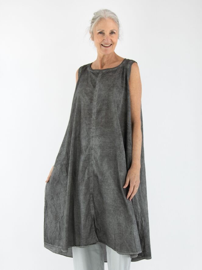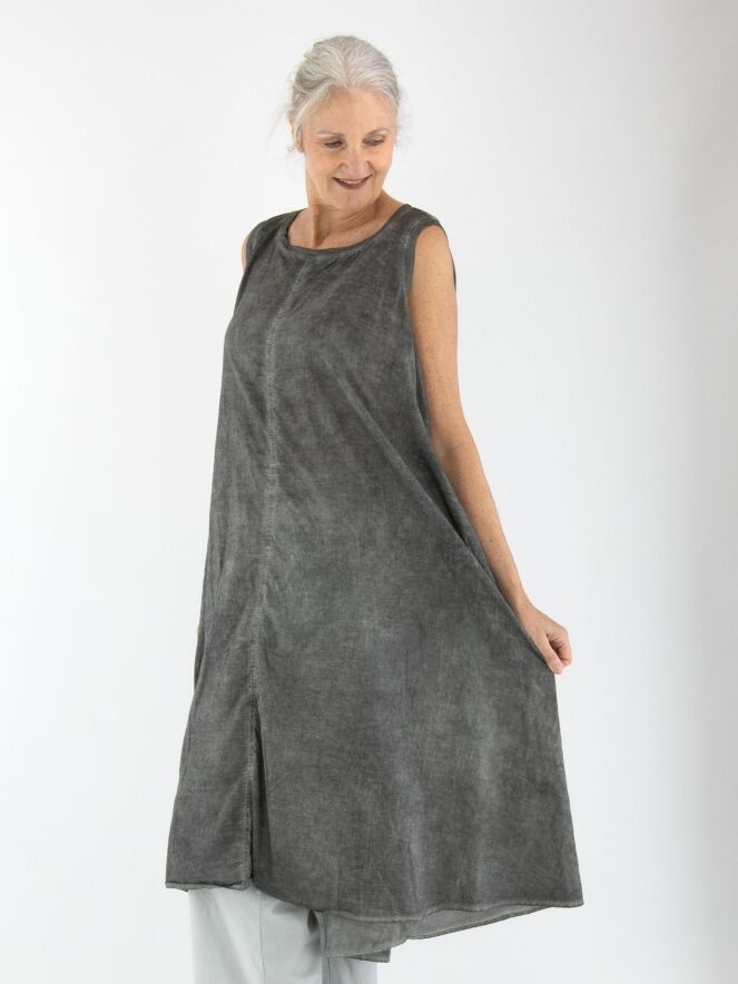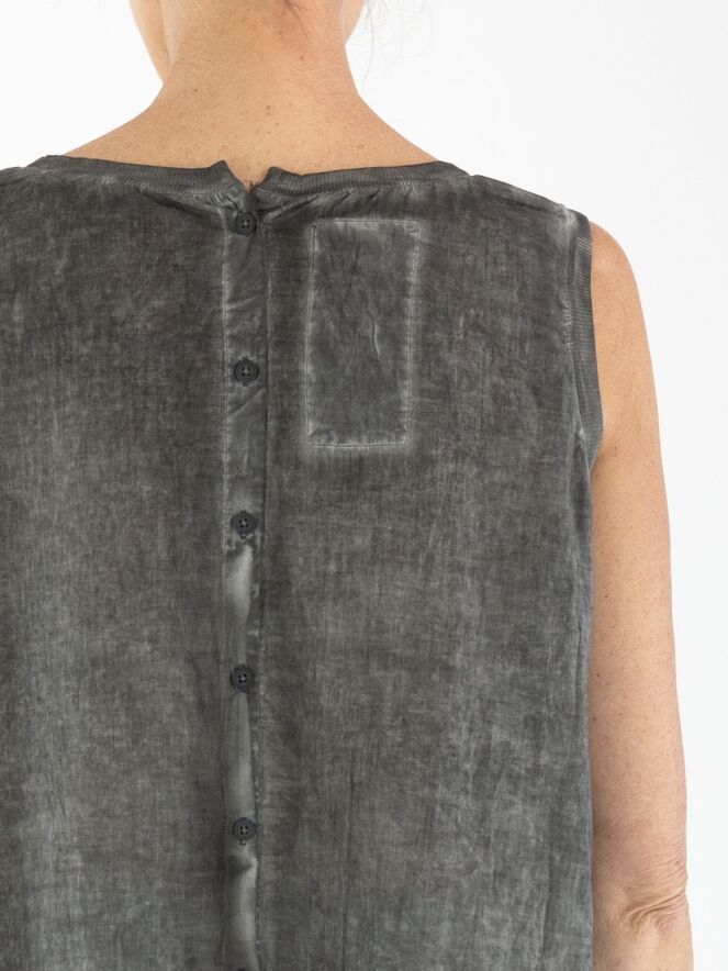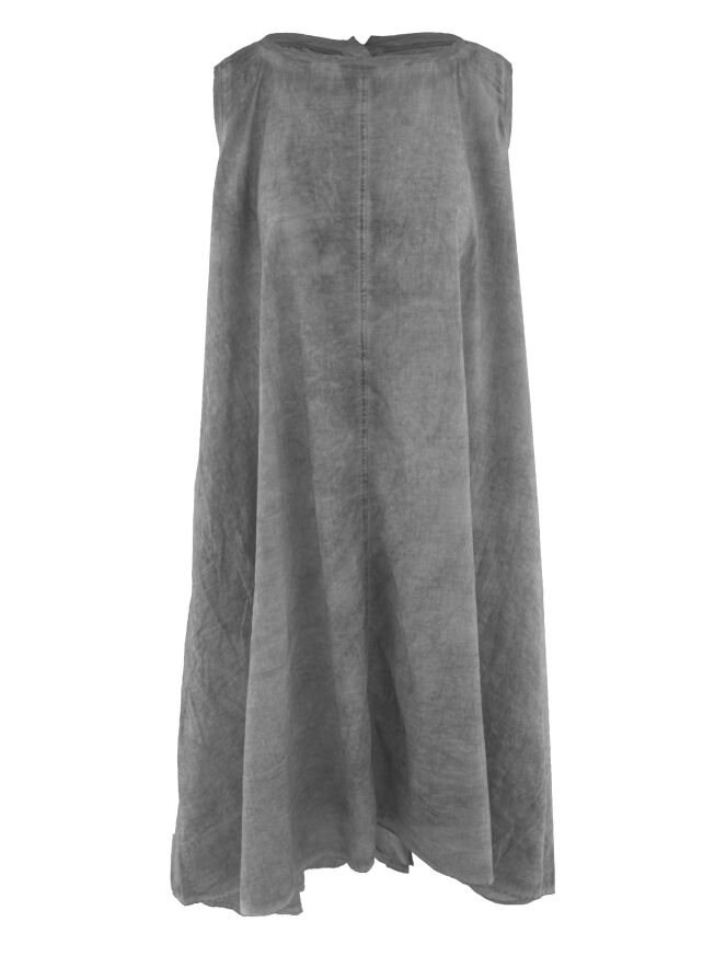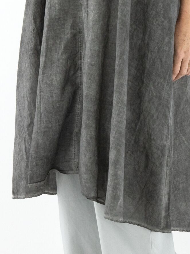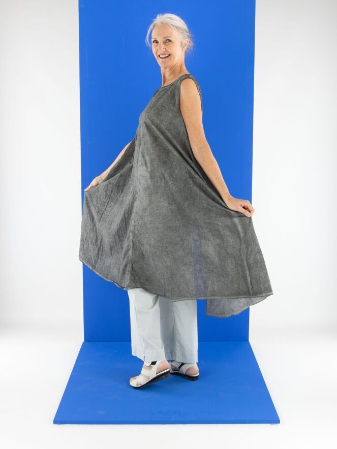 Une robe légèrement transparente de Rundholz Black Label dans une teinte gris foncé chiné. Une bordure en tricot finement côtelé souligne l’encolure ronde large et les emmanchures. Une rangée de boutons s’étend sur toute la longueur du dos. Des poches latérales sont placées à la taille. Cette robe peut être lavée à 30 degrés.