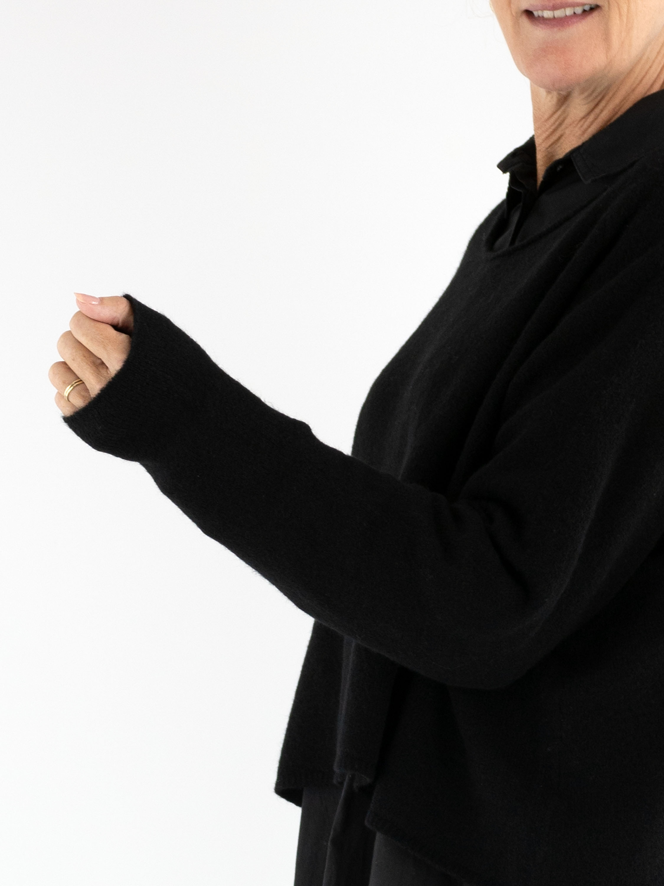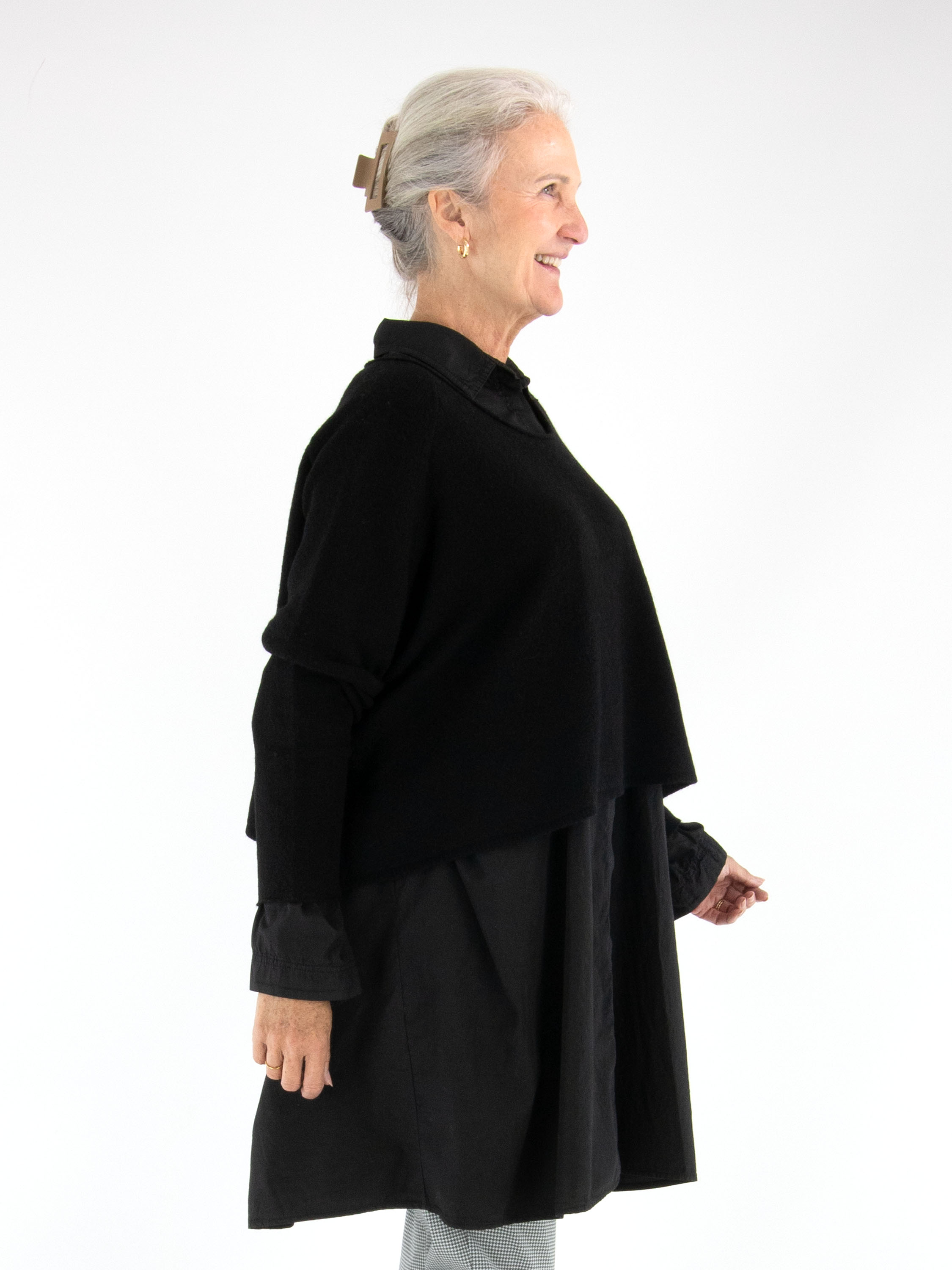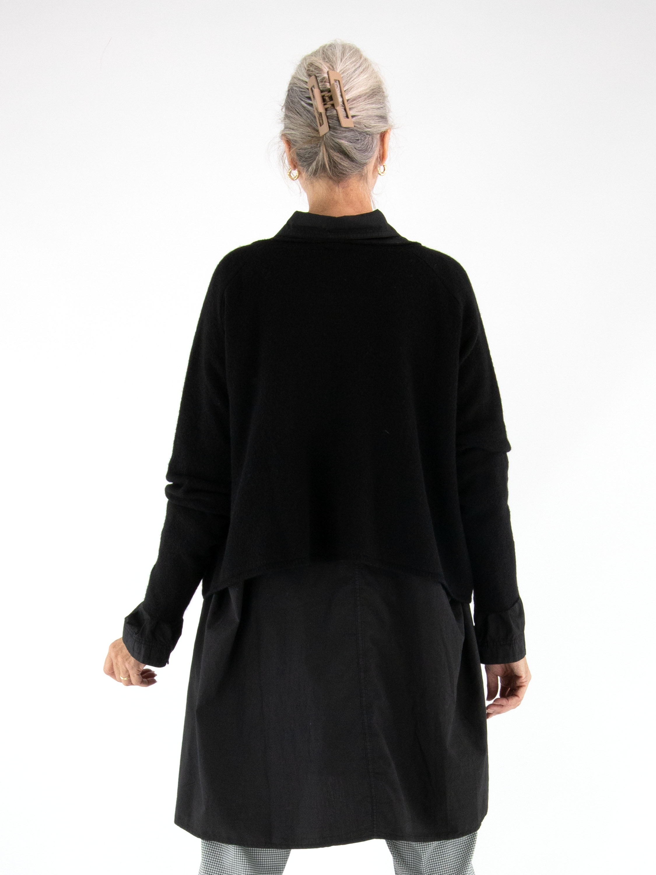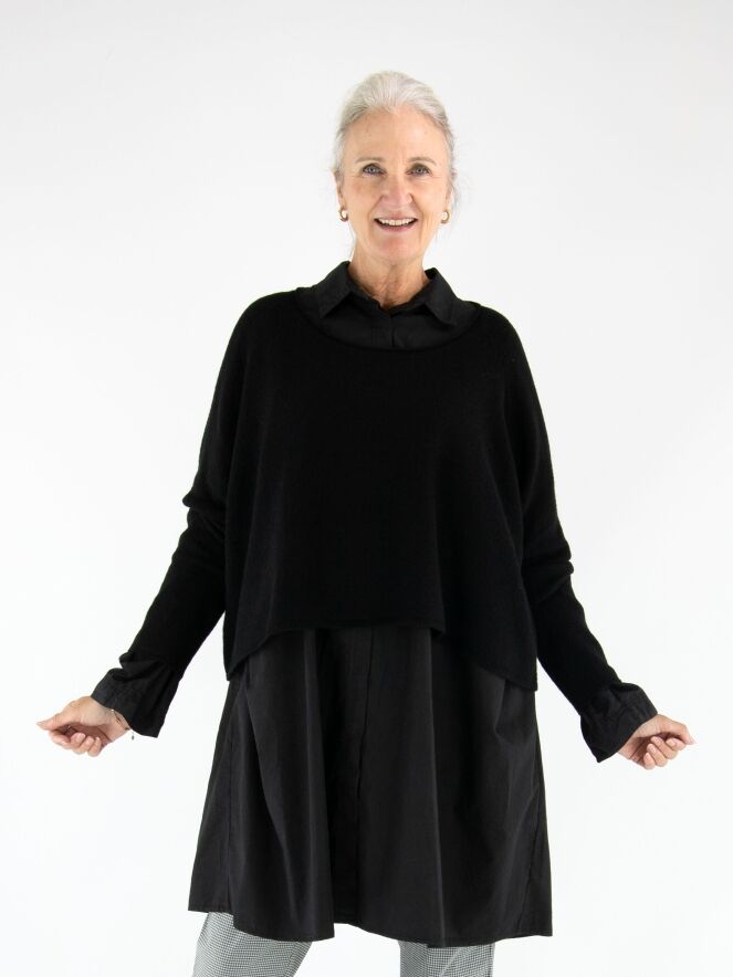 Pull ample et court de Rundholz Black Label en noir. Doté d’un col rond et de manches longues, ce pull doit être lavé à la main.