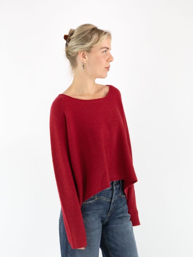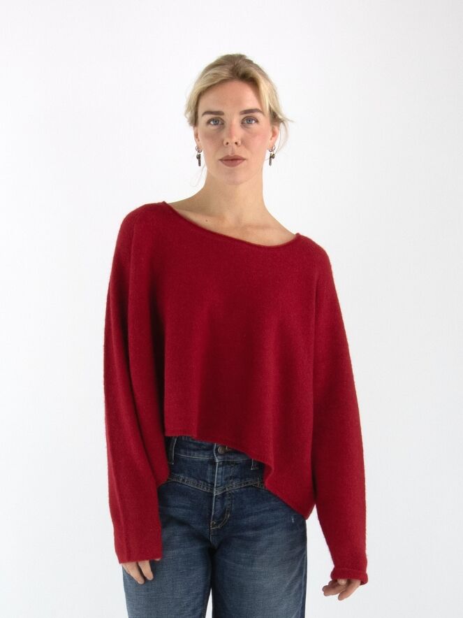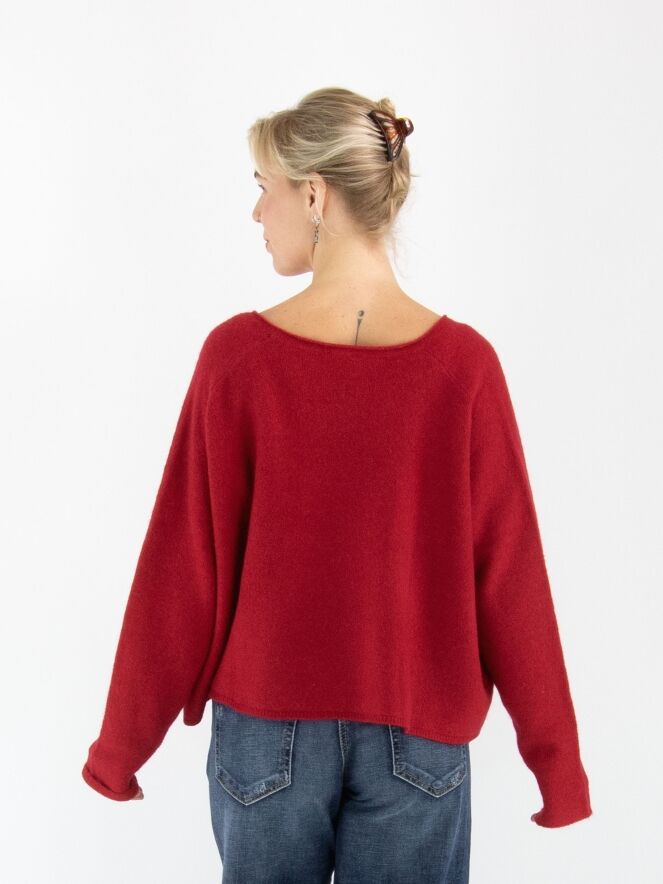 Pull ample et court de Rundholz Black Label en rouge. Doté d’un col rond et de manches longues, ce pull doit être lavé à la main.