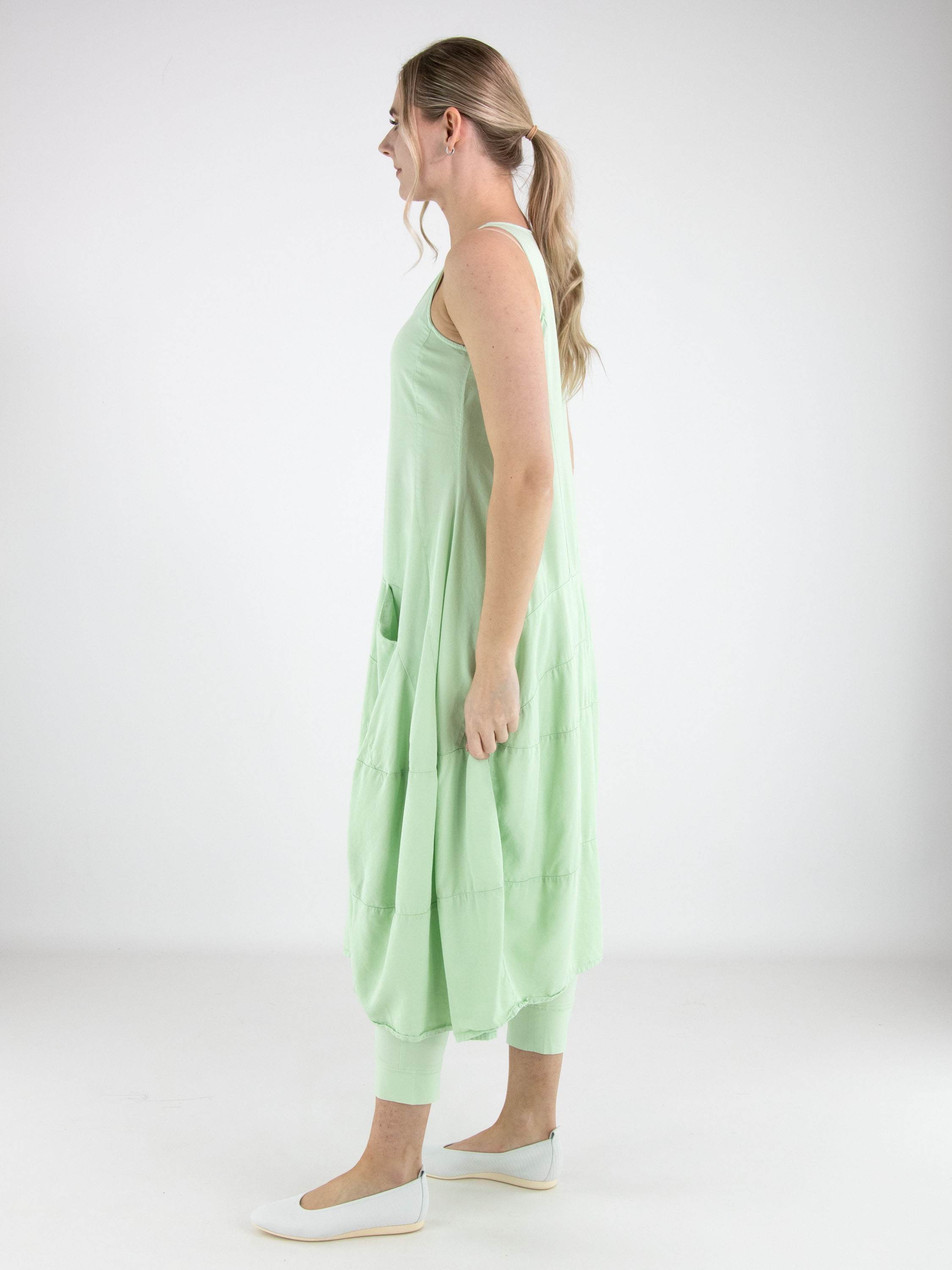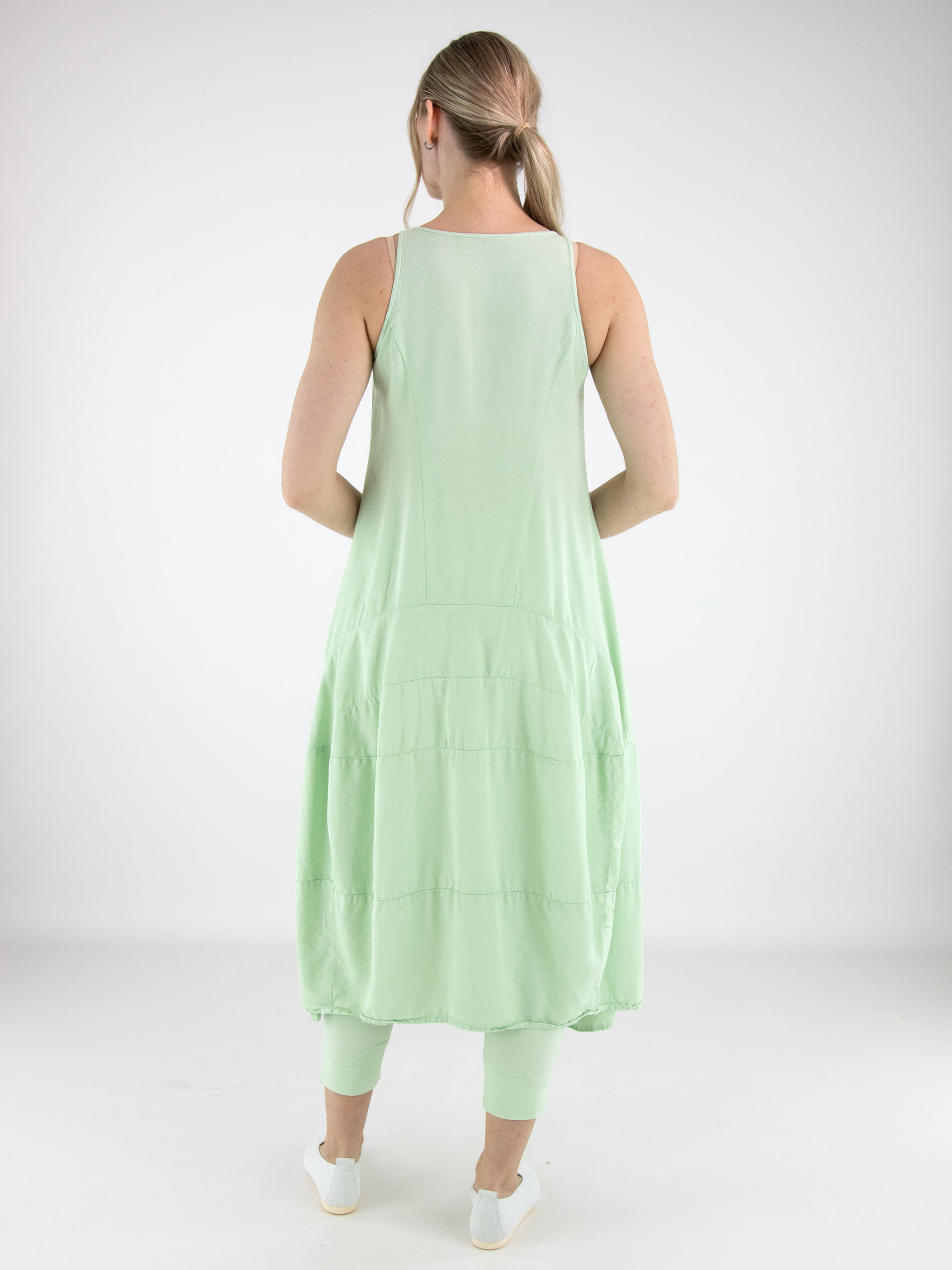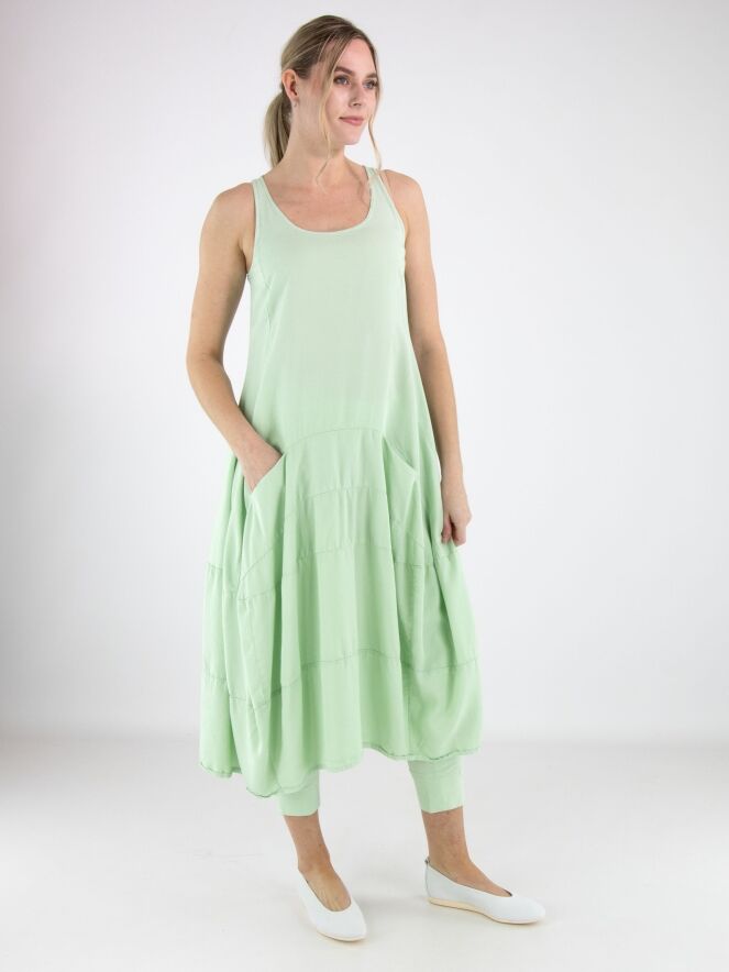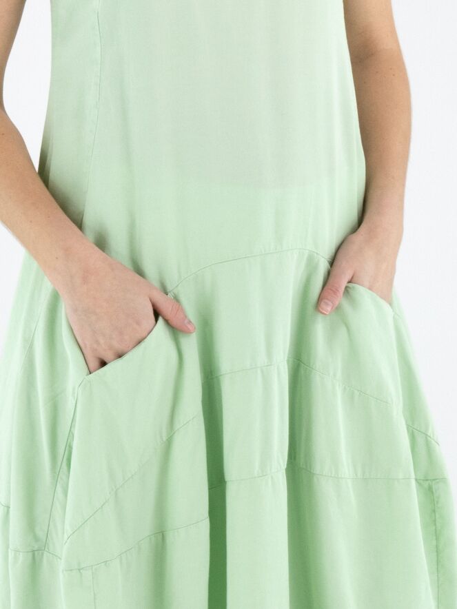 Robe sans manches de Rundholz Black Label dans une teinte vert pistache fraîche. Conçue en légère ligne A, plusieurs coutures horizontales à partir de la taille structurent le modèle et créent une subtile forme ballon. Des poches latérales à hauteur de taille ajoutent une touche pratique et contemporaine. Cette robe de créateur exclusive peut être lavée à 30 degrés.