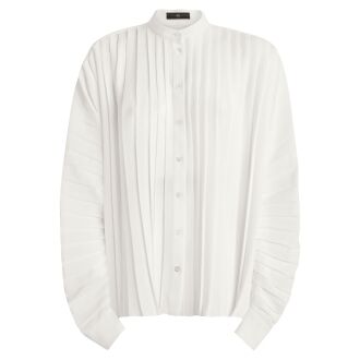 Chemise transparente à la coupe en ligne A de la marque Rundholz black label, à imprimé calligraphique aux couleurs vert, noir et gris. La chemise présente un col légèrement montant orné d'un passepoil à double tissu et des manches longues. Des fils décoratifs descendent de la patte de boutonnage et des côtés. Lavage à 30 degrés.