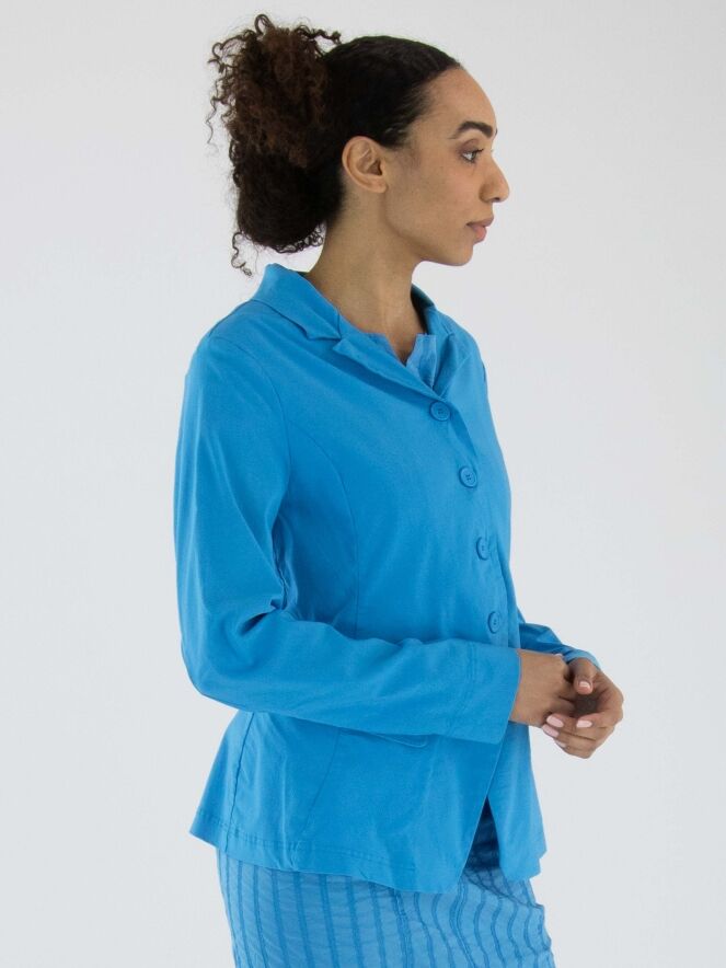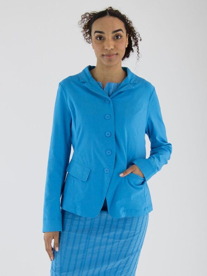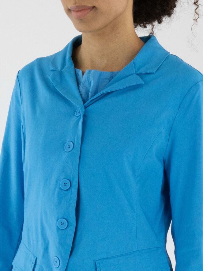 Un blazer de Rundholz Black Label dans une couleur bleu vif. Ce blazer possède une fermeture à cinq boutons et est non doublé. Le bas est coupé de manière arrondie. Ce blazer peut être lavé à 30 degrés.