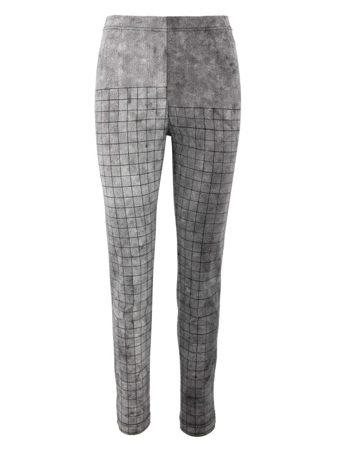 Un pantalon de Rundholz Black Label avec un motif à carreaux graphique varié en noir et blanc. Il y a une bande élastique étroite à la taille. Ce pantalon peut être lavé à 30 degrés.