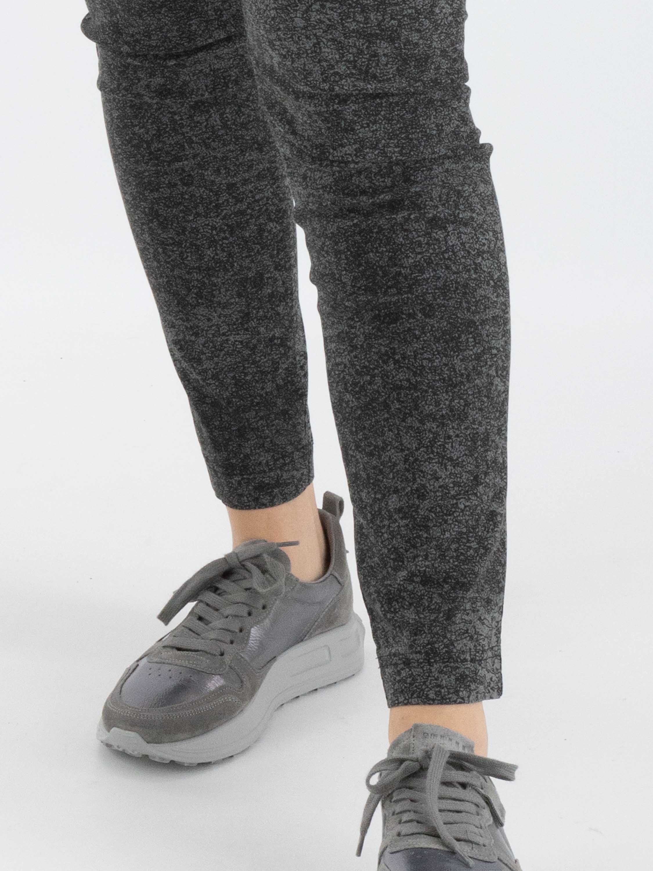 Un legging de Rundholz Black Label avec un imprimé graphique en gris et noir. La taille est dotée d'une bande élastique. Ce pantalon peut être lavé à 30 degrés.