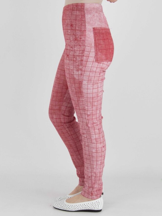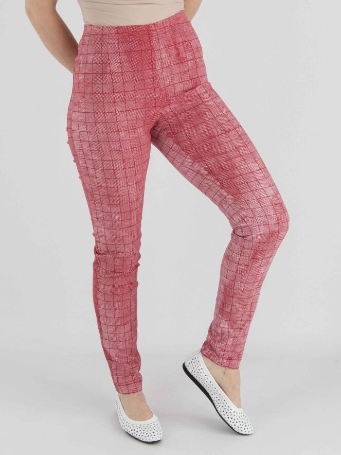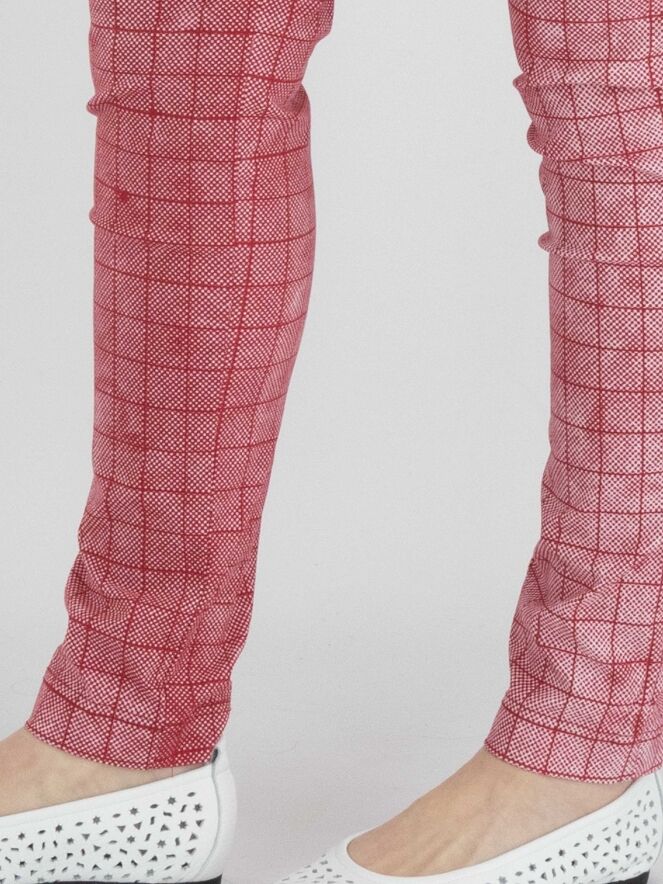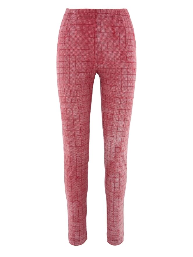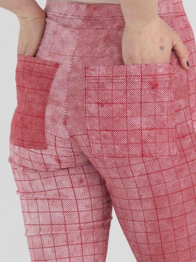 Un pantalon de Rundholz Black Label avec un motif à carreaux graphique varié en rouge et blanc. Il y a une bande élastique étroite à la taille. Ce pantalon peut être lavé à 30 degrés.