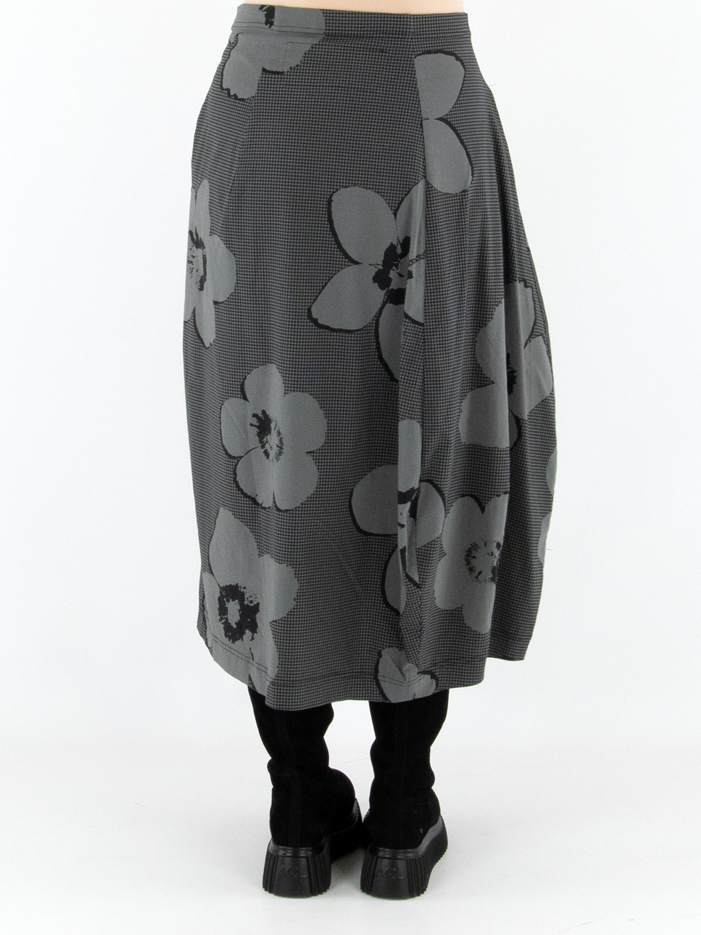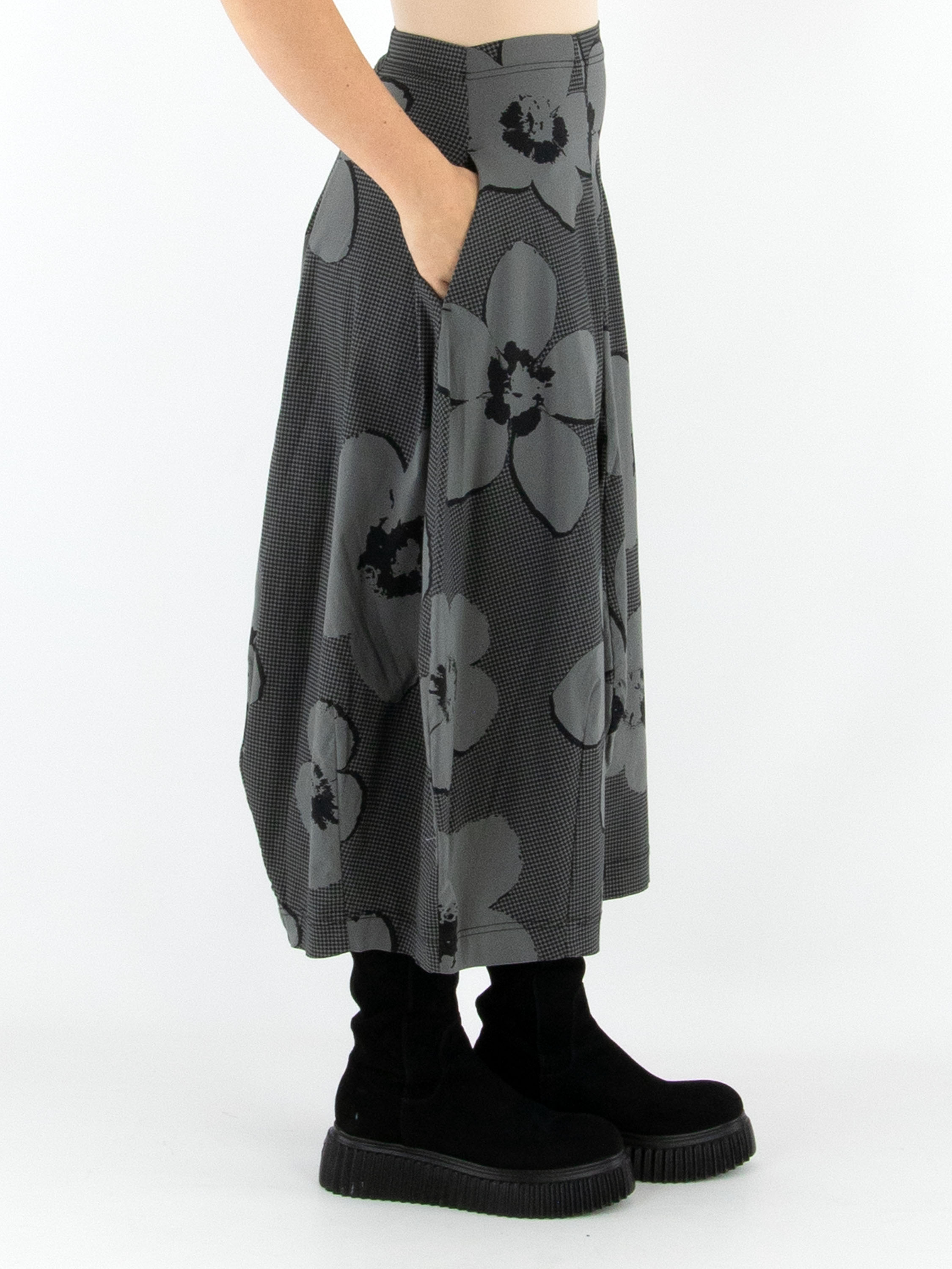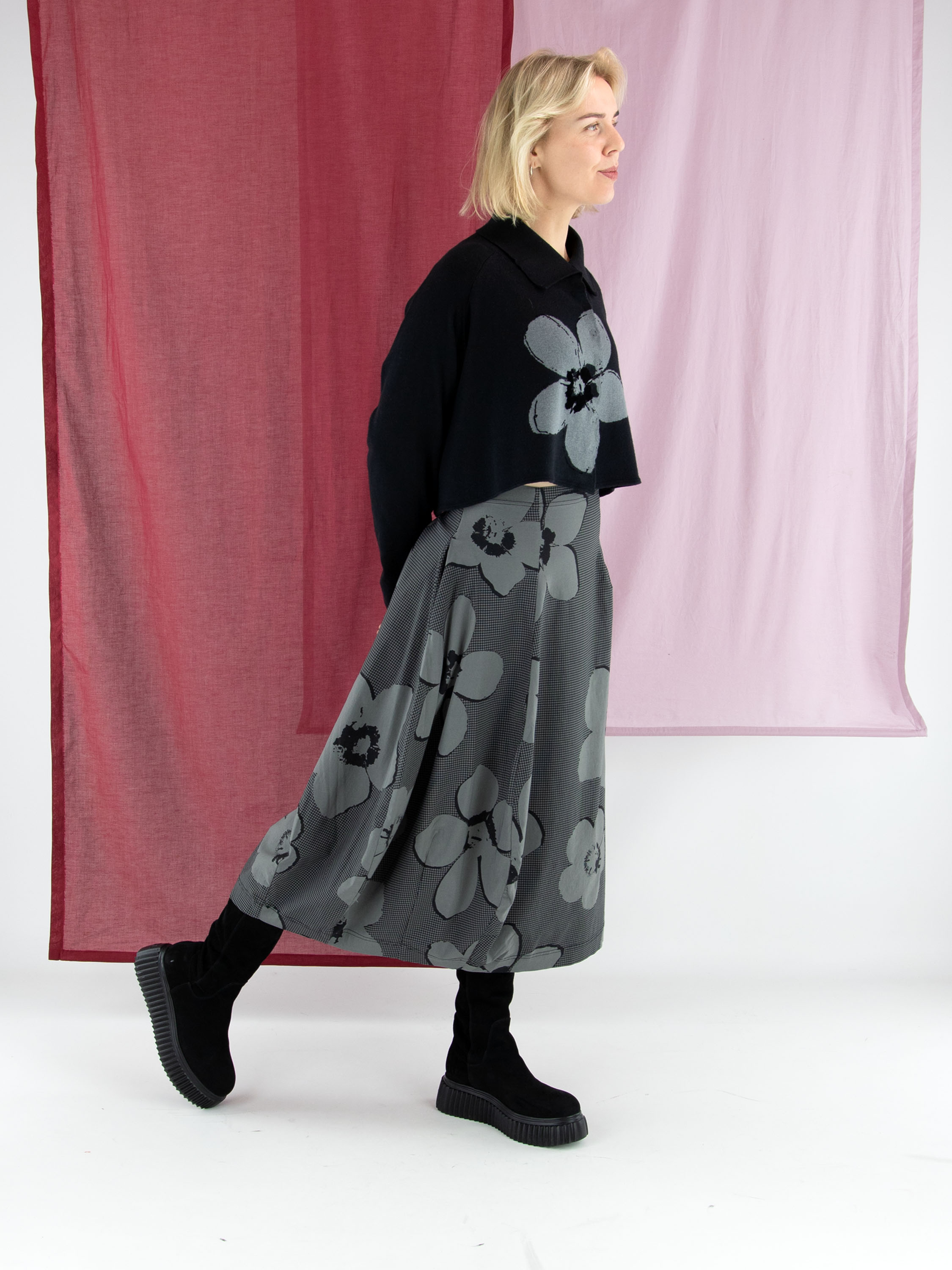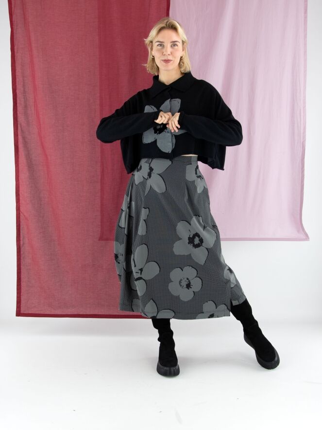 Une jupe de Rundholz Black Label à motif pied-de-coq, rehaussée de grandes fleurs dans des tons de gris et de noir. La taille est élastiquée et des poches fendues pratiques se trouvent juste en dessous. La jupe adopte une forme ballon qui lui confère une allure avant-gardiste. Cette jupe peut être lavée à 30 degrés.
