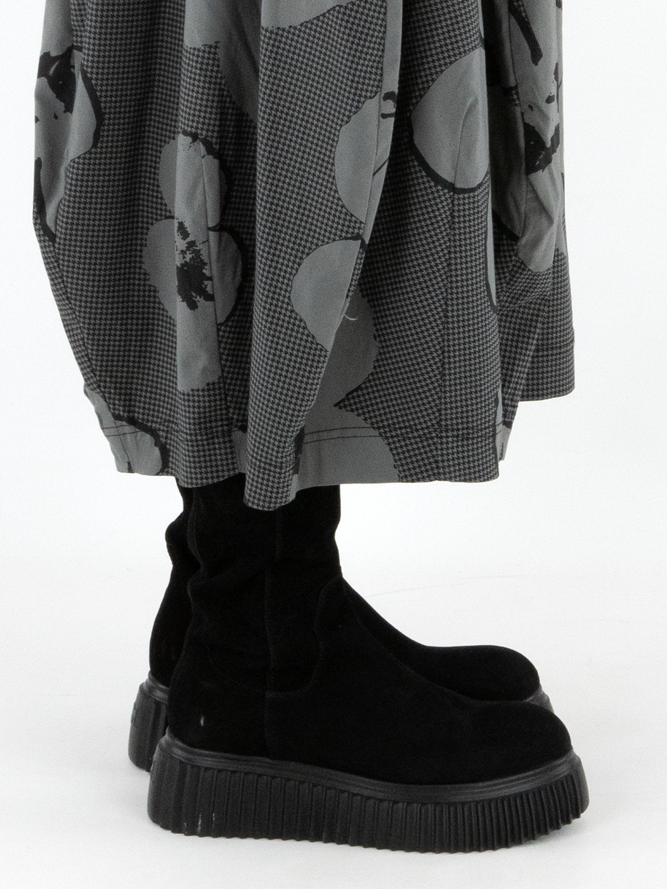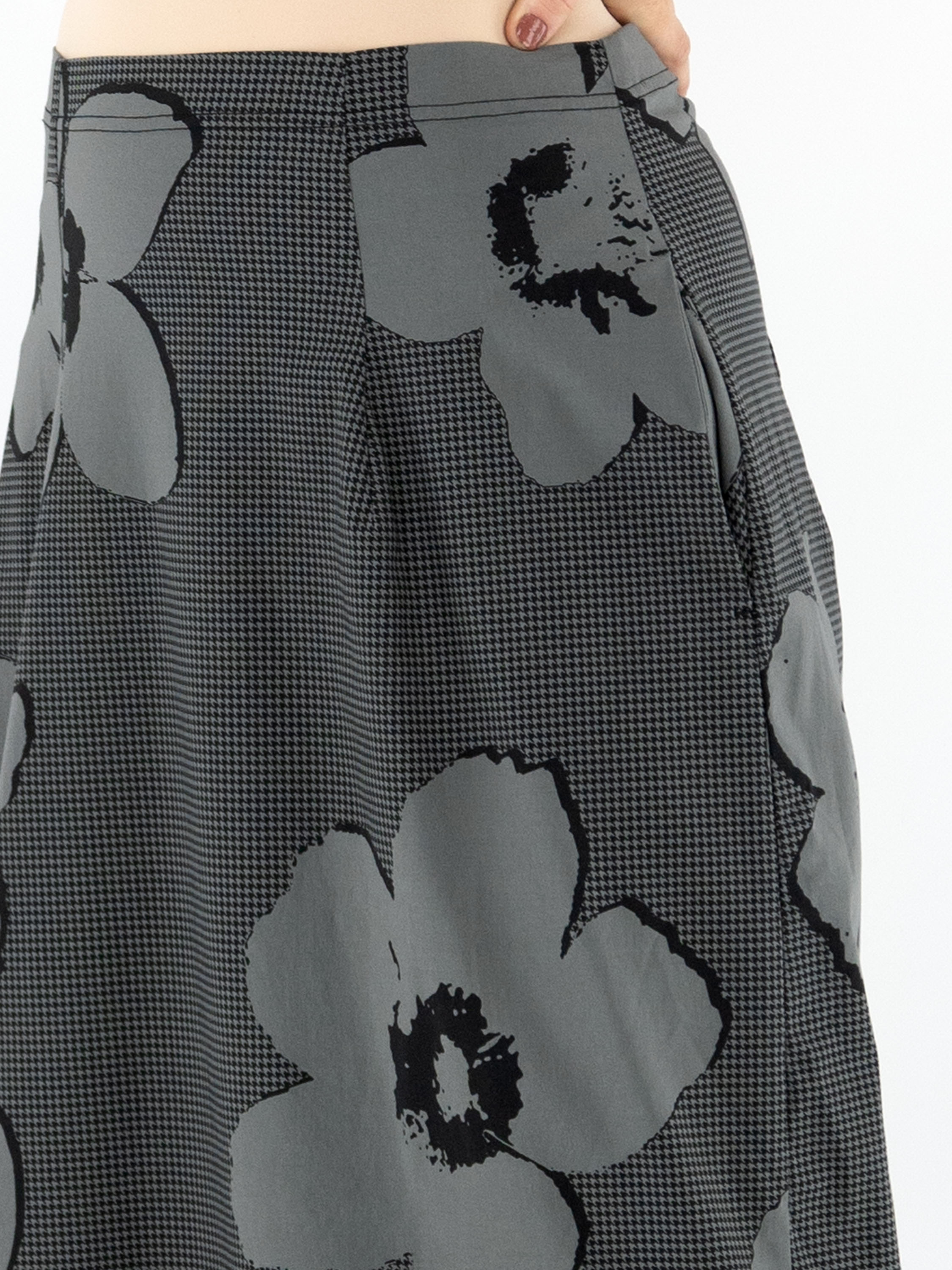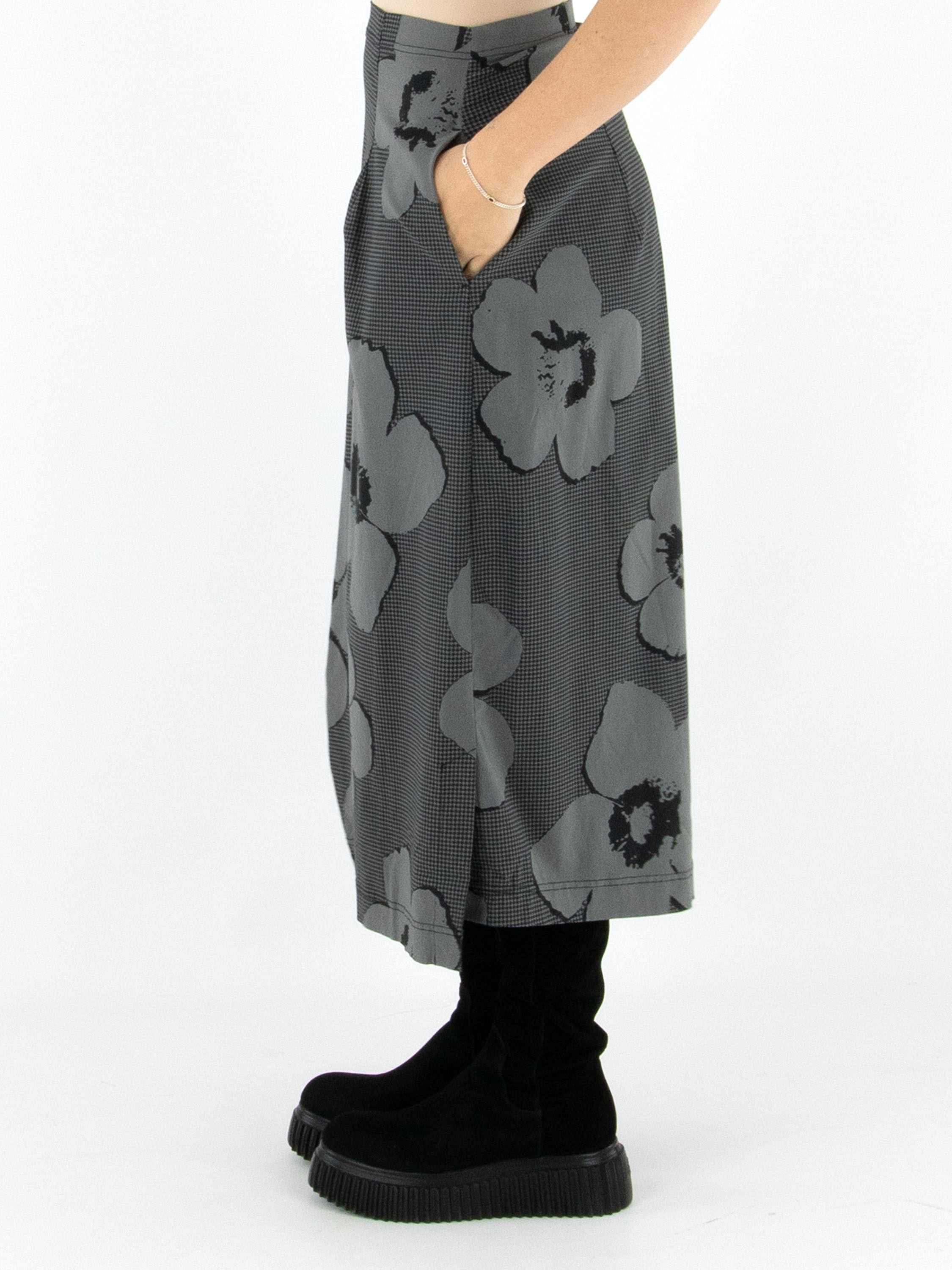 Une jupe de Rundholz Black Label à motif pied-de-coq, rehaussée de grandes fleurs dans des tons de gris et de noir. La taille est élastiquée et des poches fendues pratiques se trouvent juste en dessous. La jupe adopte une forme ballon qui lui confère une allure avant-gardiste. Cette jupe peut être lavée à 30 degrés.