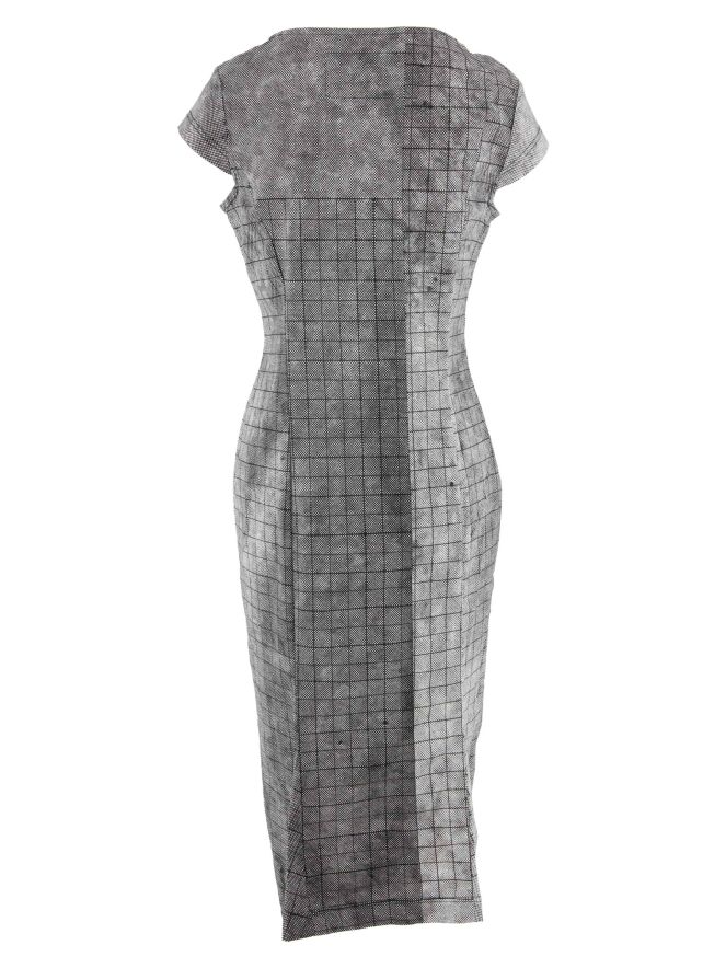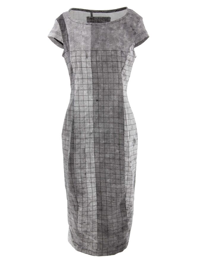 Une robe de Rundholz Black Label avec un motif de losanges graphiques variés en noir et blanc. La robe a un large décolleté et des manches chauve-souris. Cette robe peut être lavée à 30 degrés.