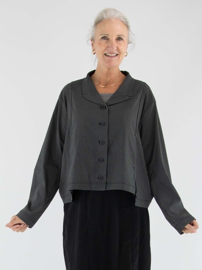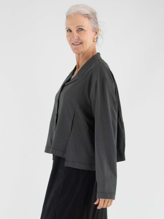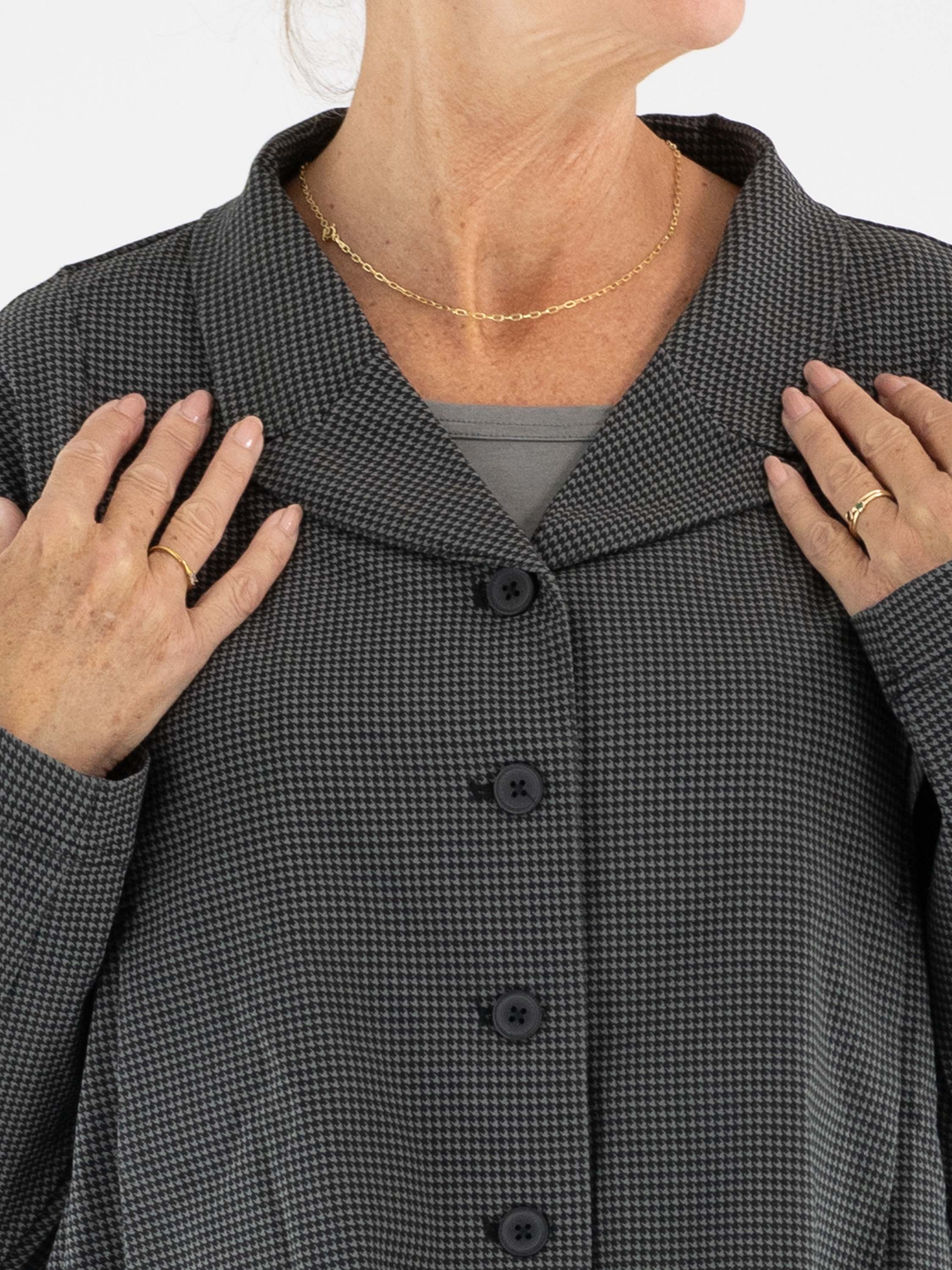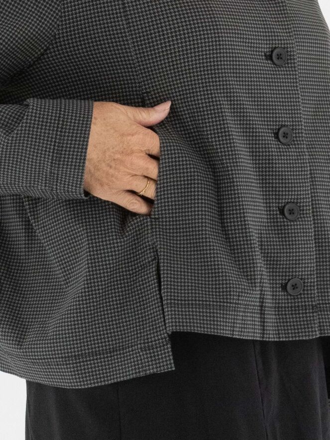 Un blazer ample de Rundholz Black Label à motif pied-de-coq dans des nuances de gris et de noir. Il se ferme par cinq boutons et présente des poches fendues à hauteur de taille. Ce modèle associe un motif classique au style contemporain caractéristique de Rundholz. Le blazer peut être lavé à 30 degrés.