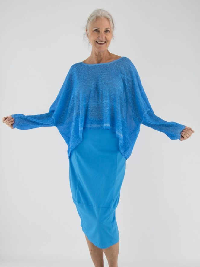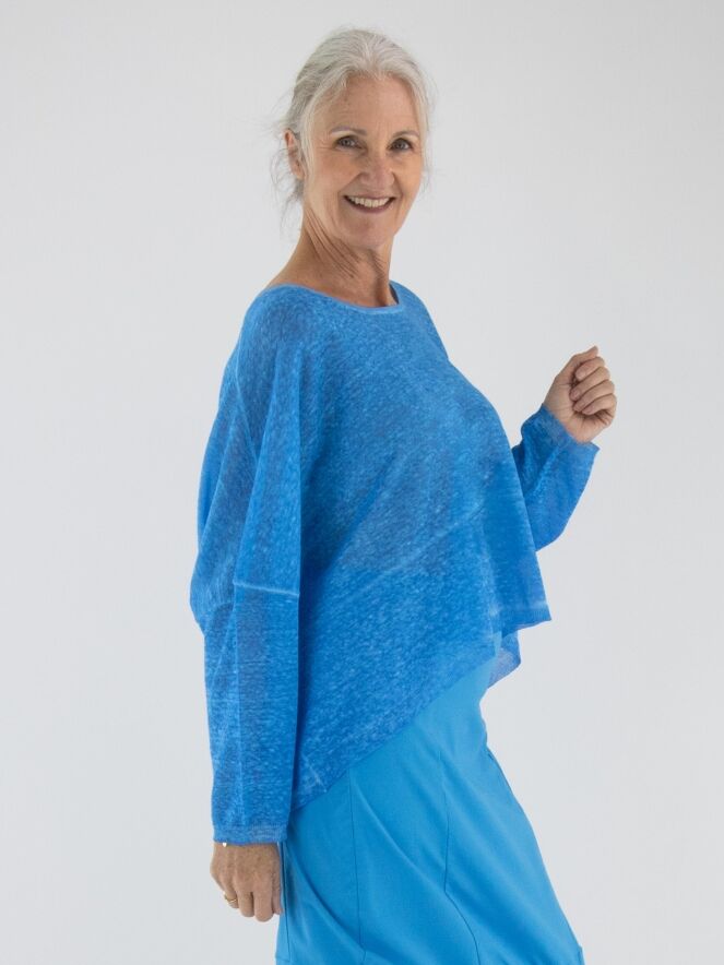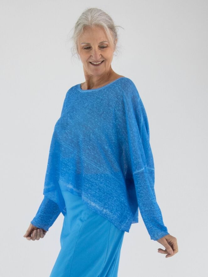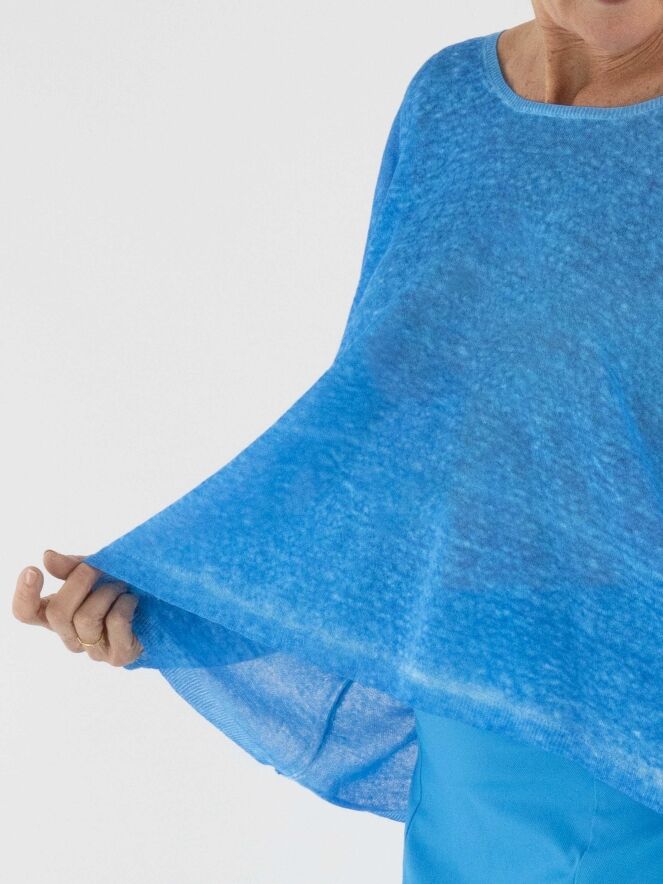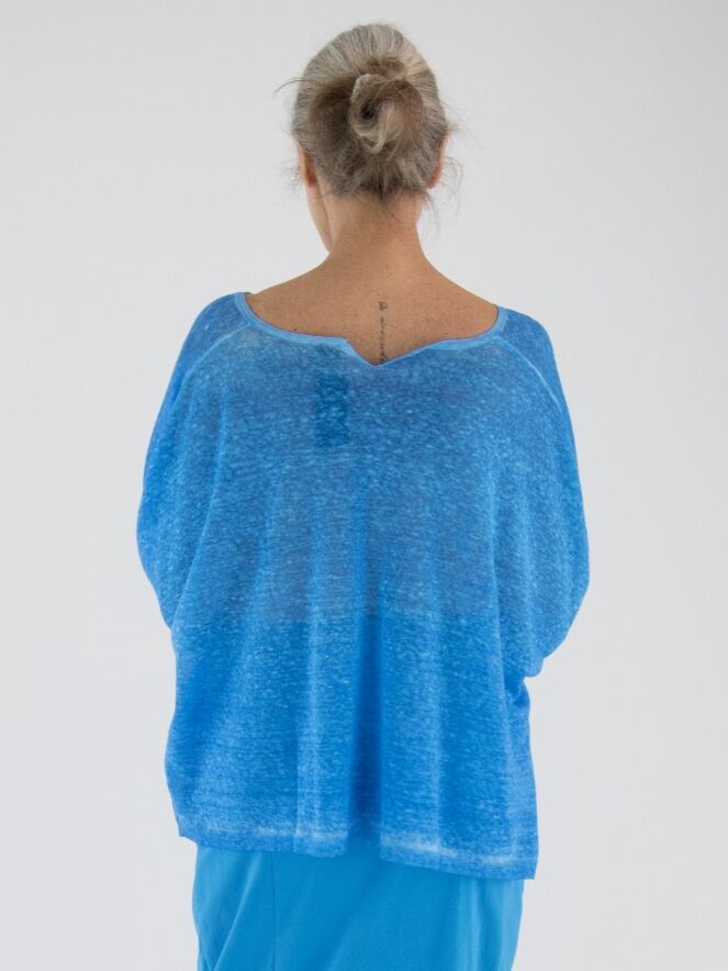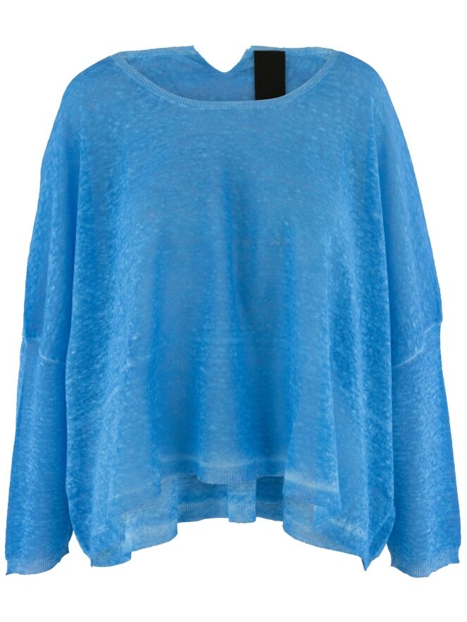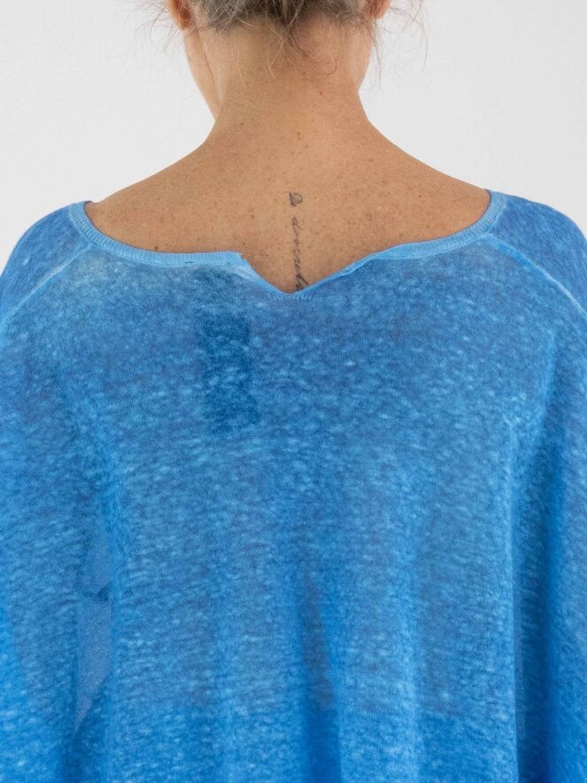Un pull ample, chiné et légèrement transparent de Rundholz Black Label en bleu vif. Ce pull présente des manches mi-longues et une large encolure ronde. Ce pull peut être lavé à 30 degrés.