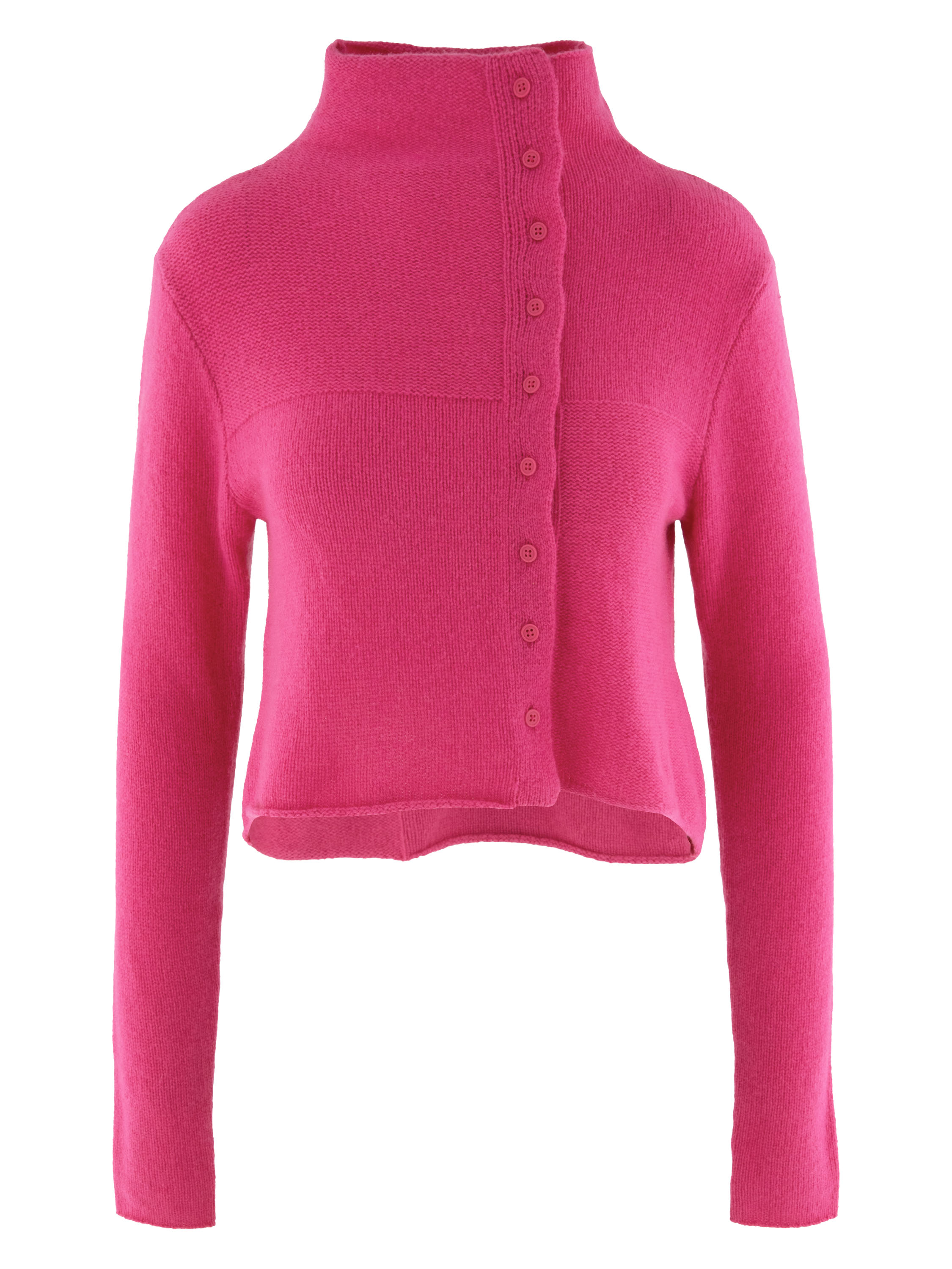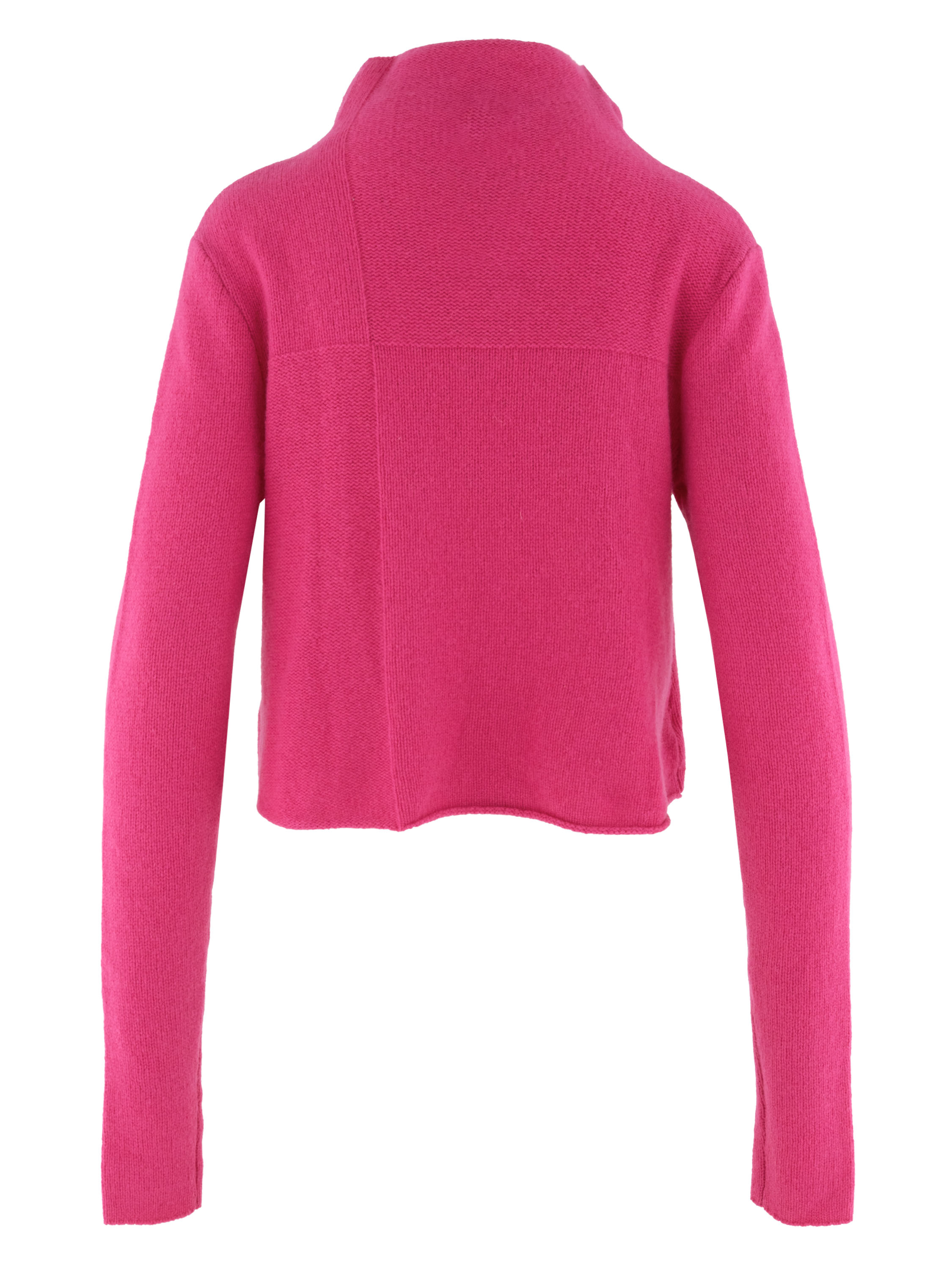 Veste courte Rundholz Black Label dans une teinte rose vif. Tricotée en motif à carreaux avec un ourlet froncé. Cette veste doit être lavée à la main.