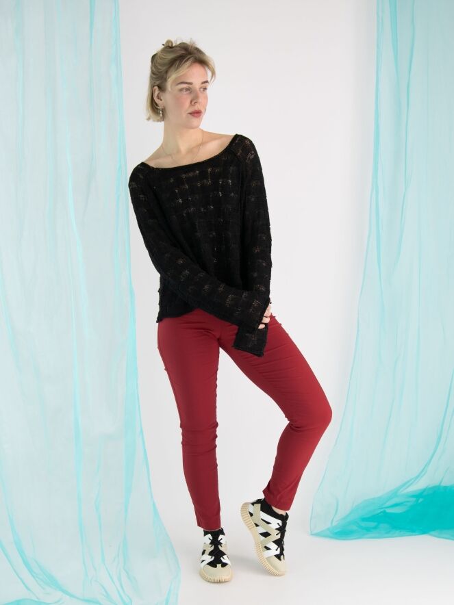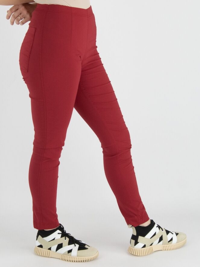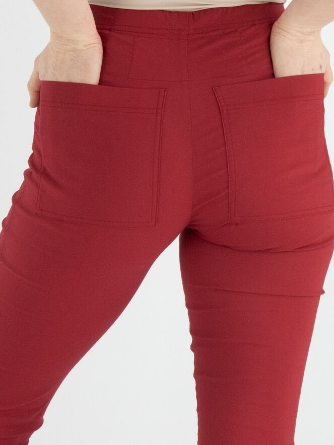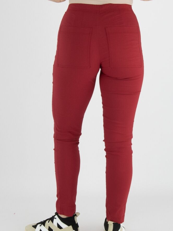 Pantalon Rundholz Black Label en rouge. La taille est dotée d'une bande élastique. Ce pantalon est coupé slim et peut être lavé à 30 degrés.