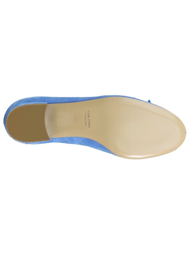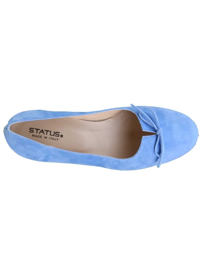 Ballerine couleur bleu pastel de la marque Status. Une petite fente au bout duquel est noué un fin lacet bleu orne l'avant-pied. Intérieur doublé cuir.
