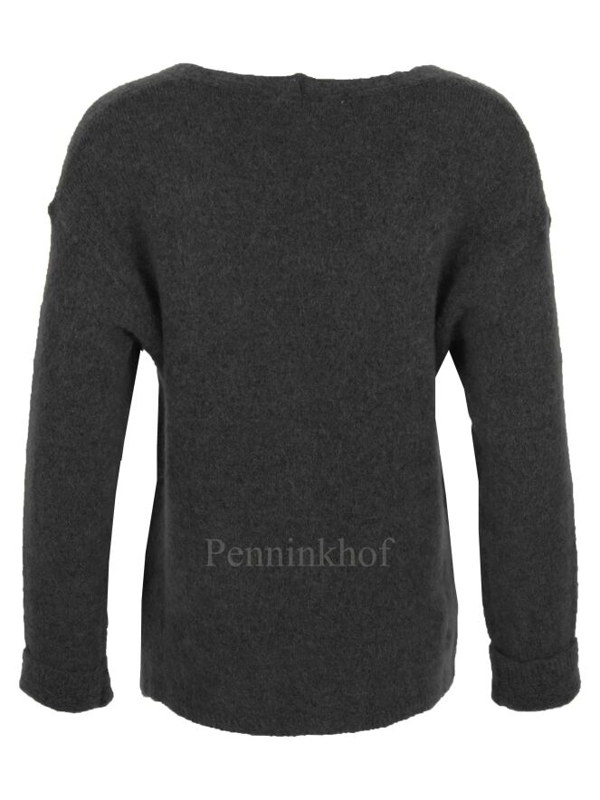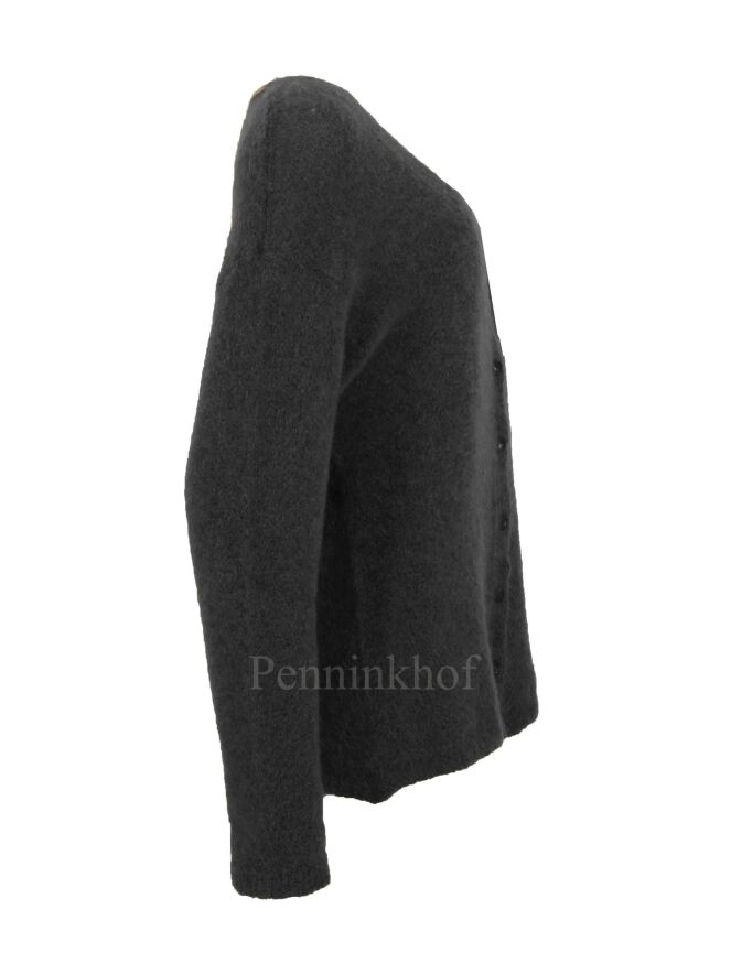 Luxueux gilet à profonde échancrure de la marque Tandem, de couleur gris foncé. Le cardigan est doté d'une fermeture à 5 boutons et de manches longues. Lavage déconseillé.
